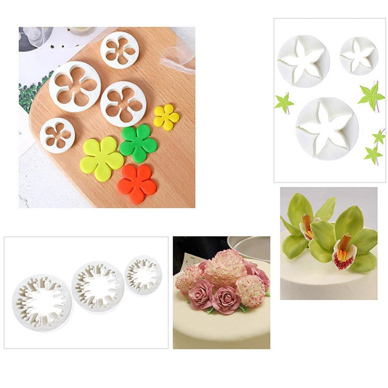 Насладете се на изкушаващата възможност да създадете прекрасни и впечатляващи декорации за вашите торти и сладкиши с нашия сладкарски комплект от 10 броя шаблони с бутало за фигури от фондан.