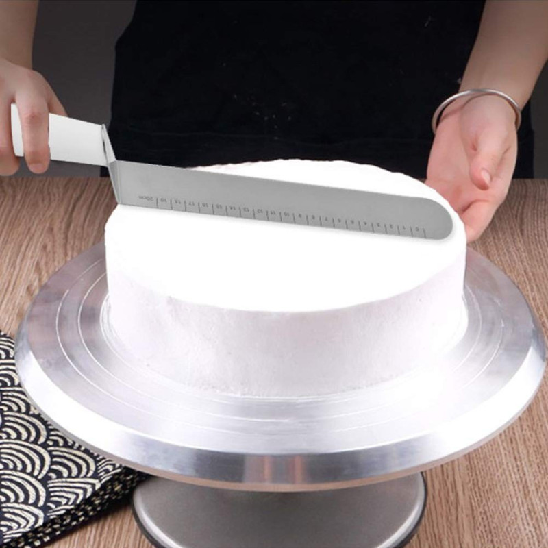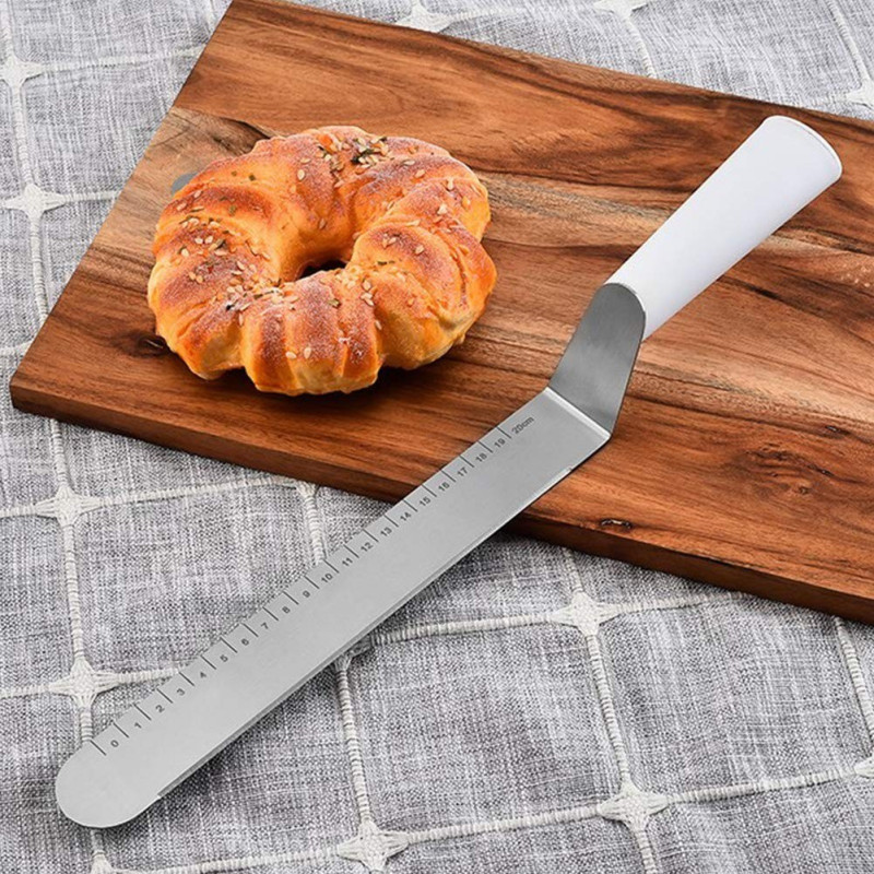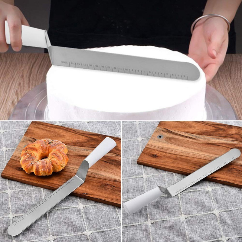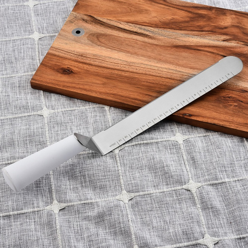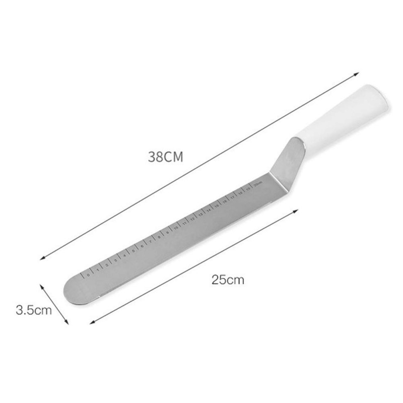 Тази шпатула е подходяща за разпределяне на глазури и кремове. Преди употреба е препоръчително да се измие и подсуши добре. С размери от 38 см и дължина на острието от 25 см, тя осигурява достатъчно площ за работа. Оразмерена със скала до 20 см, можете лесно да контролирате дебелината на сместа.
