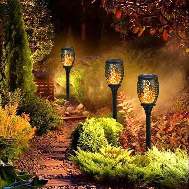 Красиви танцуващи пламъци: хубав дизайн на трептящ пламък, реалистичен ефект на пламъка, който ще придаде очарователна атмосфера; А новата ни версия на външния вид ще ви донесе различни усещания за красота. Водоустойчив и издръжлив: Изработен от траен и водоустойчив материал, не се притеснявайте от дъжд, сняг. Перфектен за използване на открито. Красиво декоративно осветление за вашата градина, пътека, алея, вътрешен двор и др.
