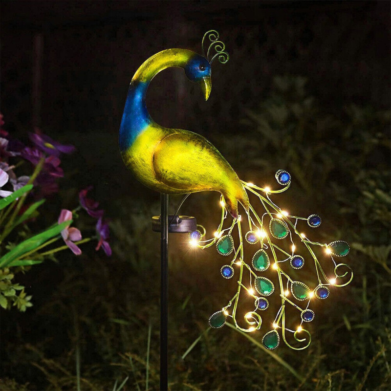 Красива декоративна лампа за градина с форма на паун със светеща опашка