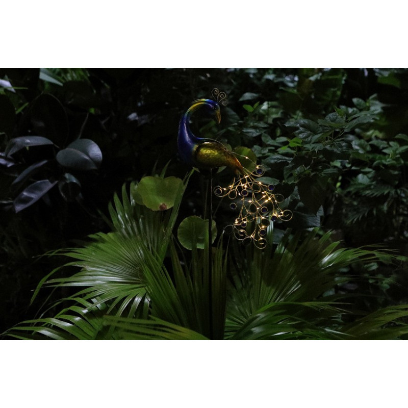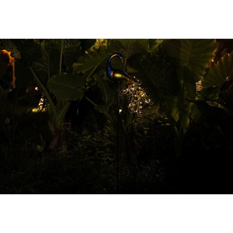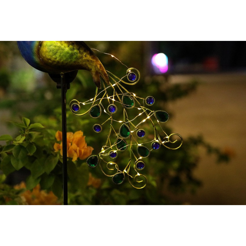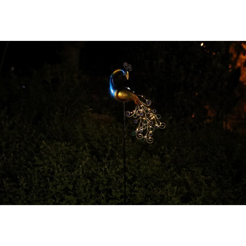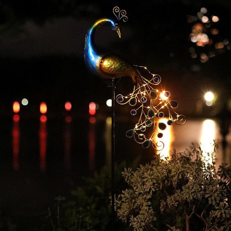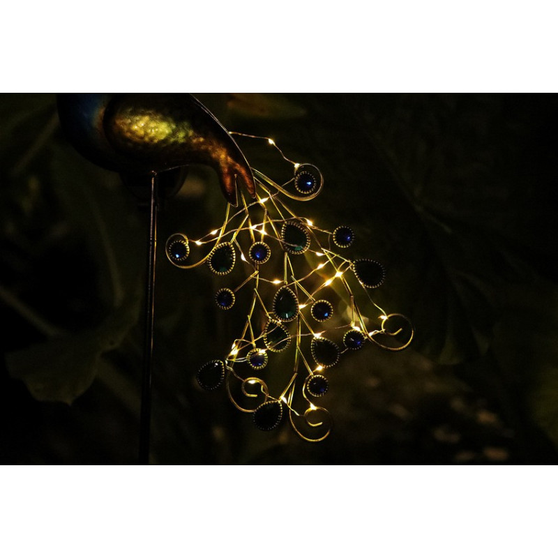 Създайте изключителна градинска декорация, като разположите каскада от светлини във вашата градина, двор или цветна градина. С формата на паун, тази соларна лампа ще освети вашия външен свят с вълшебна светлина и създаде чудесна атмосфера след залязването на слънцето.
