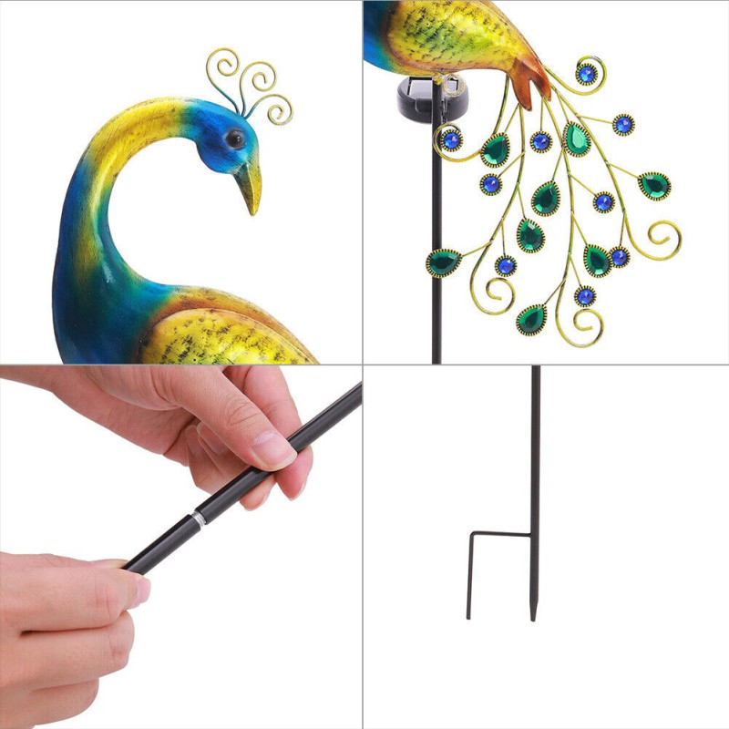 Осветете вашия двор с елегантна декоративна лампа във формата на паун със светеща опашка. Тази градинска соларна LED лампа автоматично се активира след залез и добавя магия във вашия външен свят.