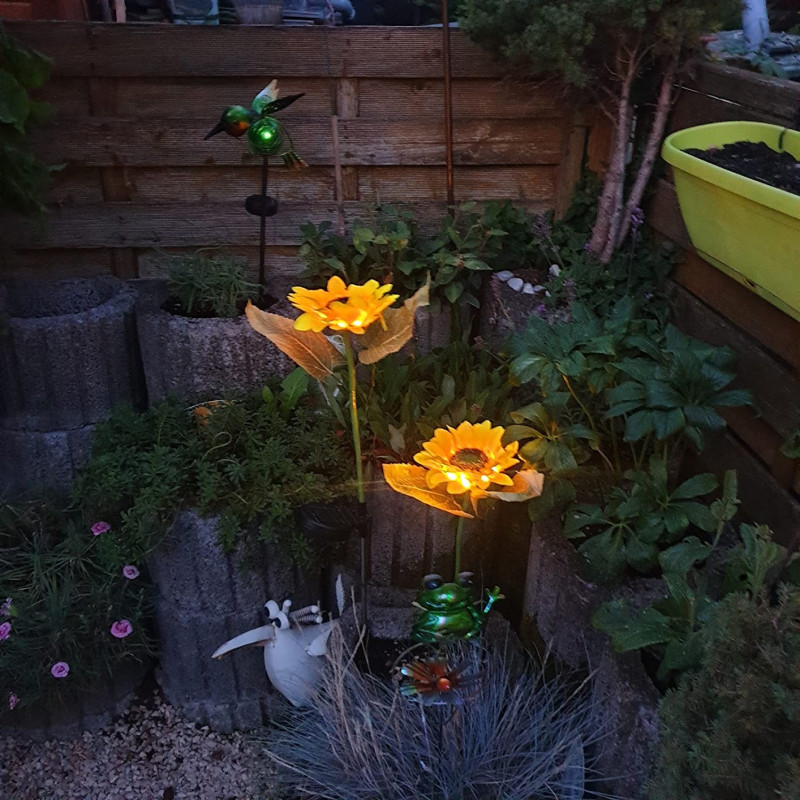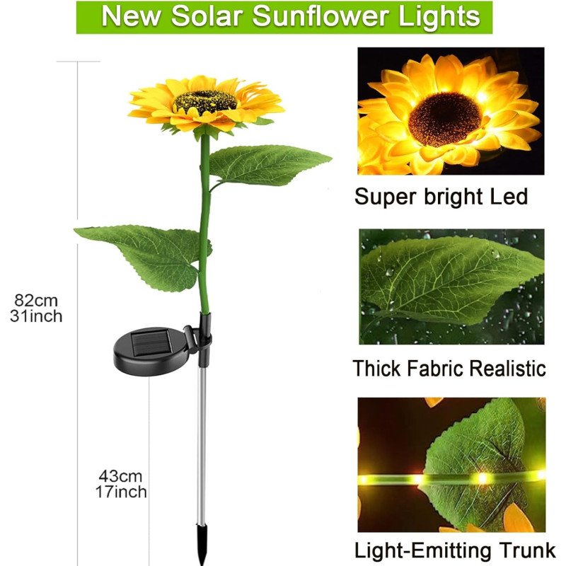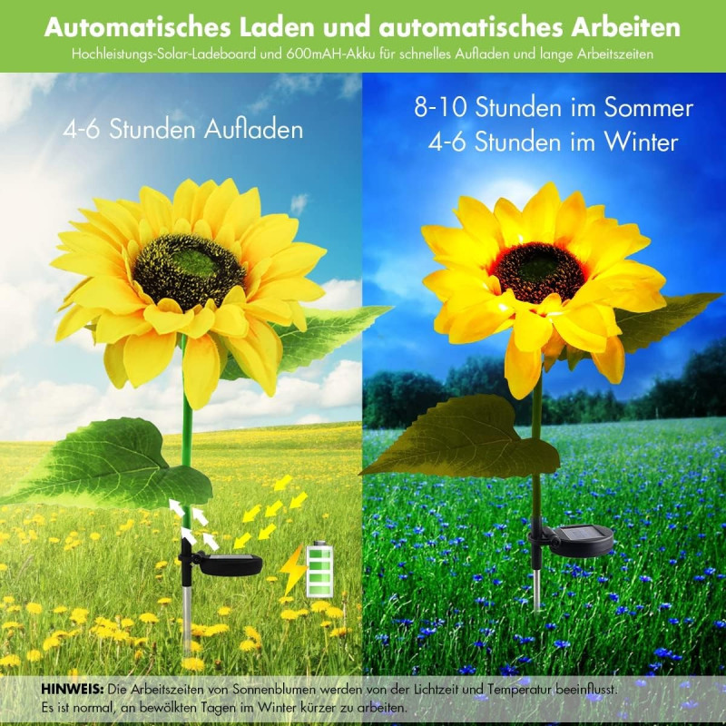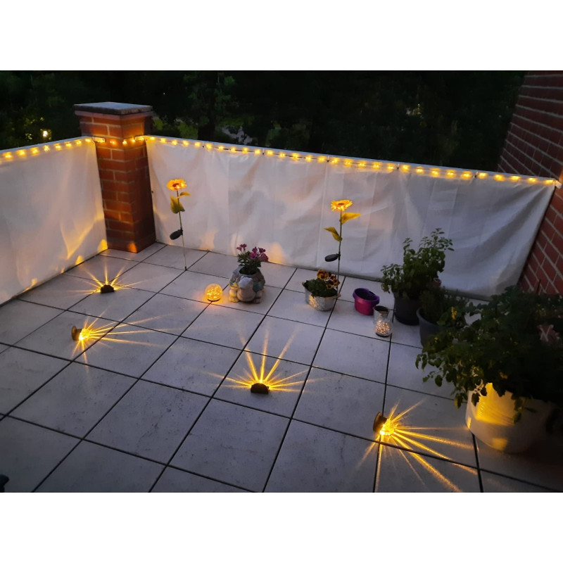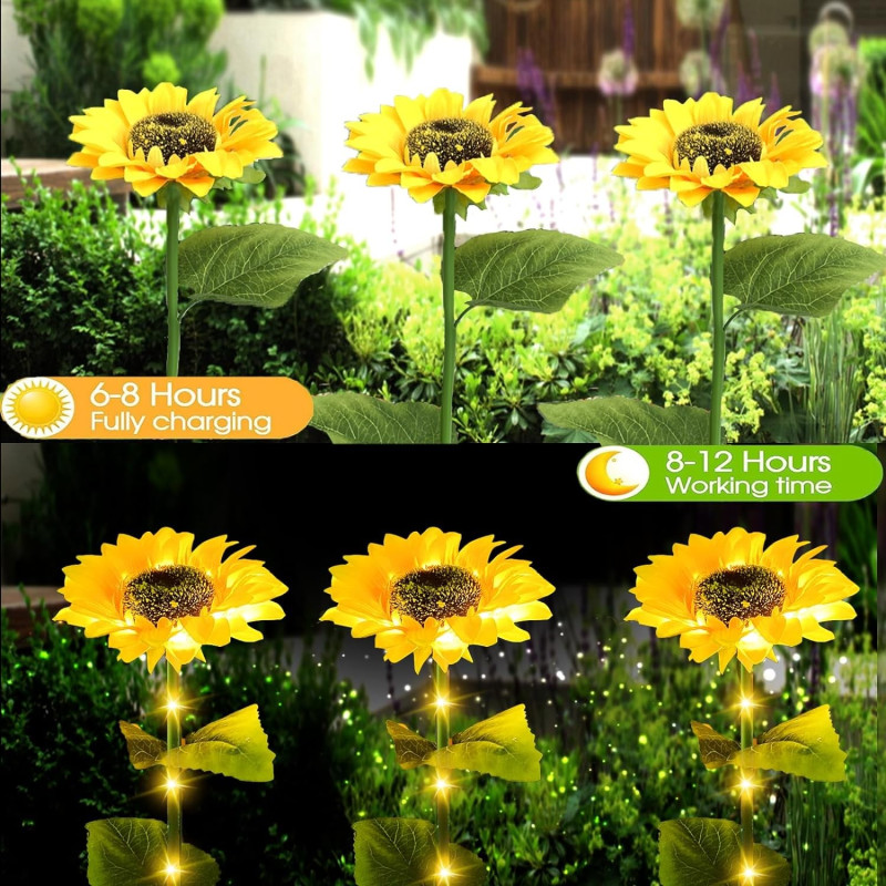 Красива и реалистична, особено през нощта. Изработена от нов материал. Цветното венчелистче е проектирано да имитира истинското цвете. Светейки в тъмното, тези слънчеви светлини правят вашата градина уникална.