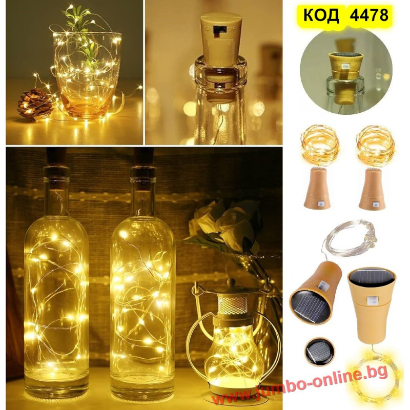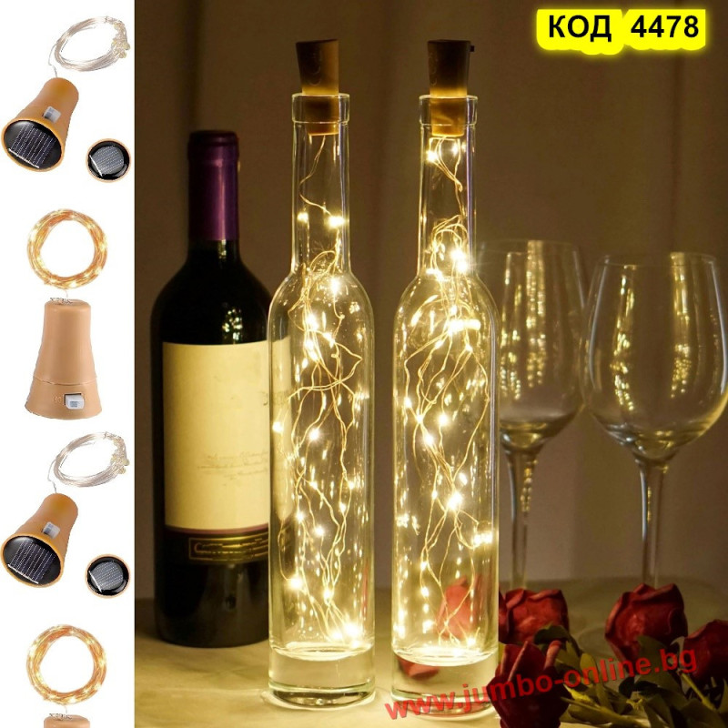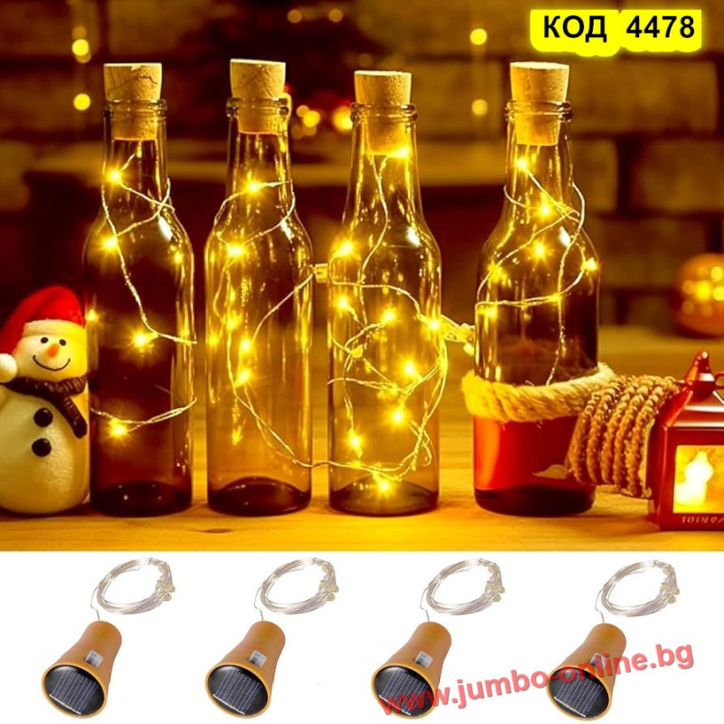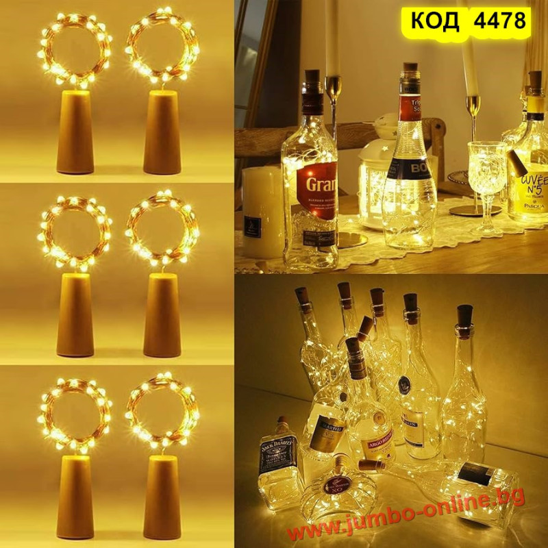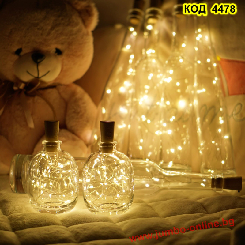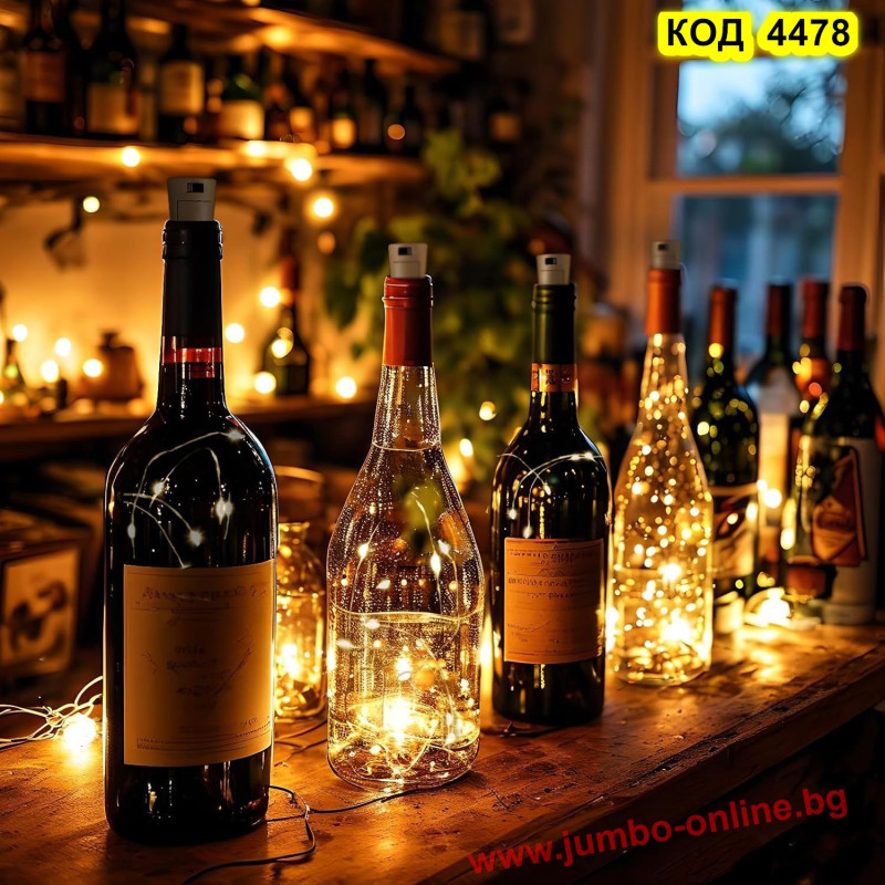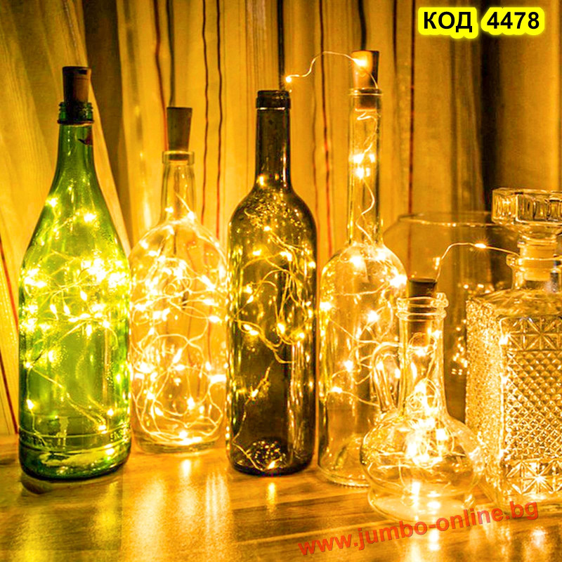 LED Декоративни лампички с тапа за бутилка - топла светлина - 2 метра с 10 диода