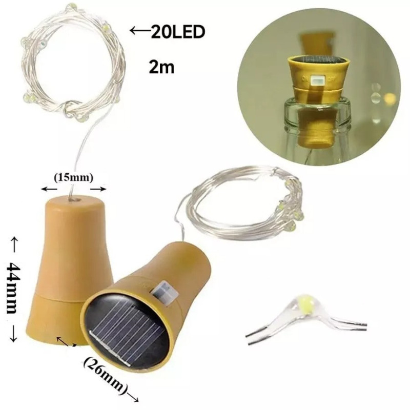 Тапа за бутилки със соларен панел и 10 лед лампички с обща дължина 2 метра - 1 брой