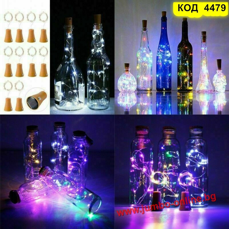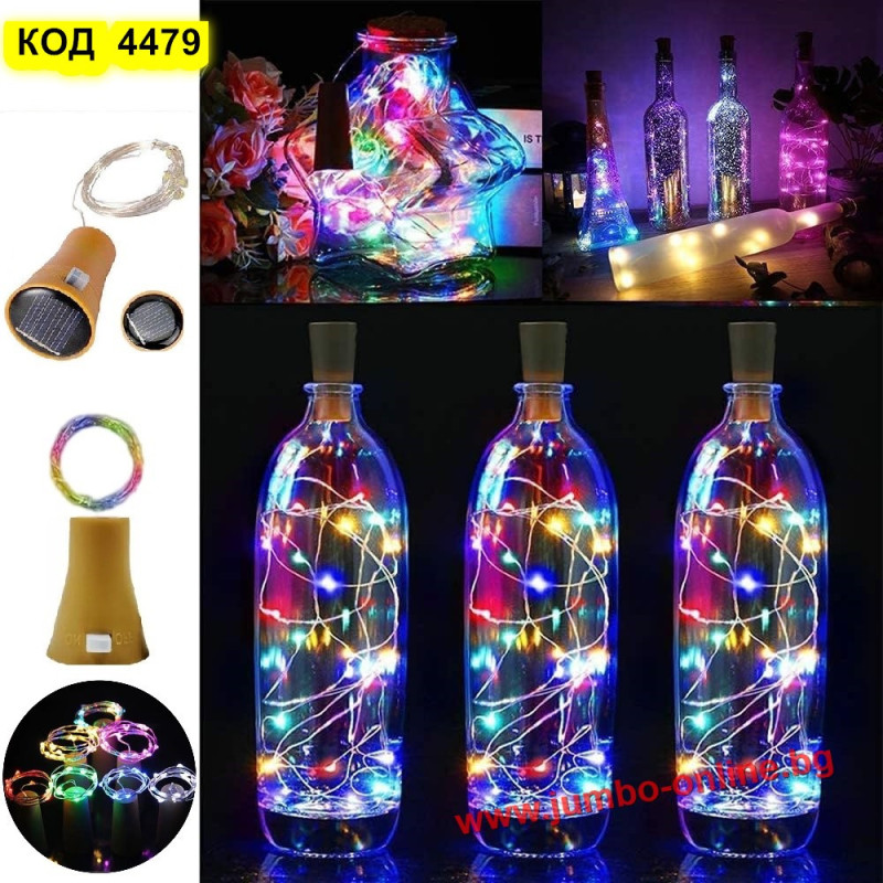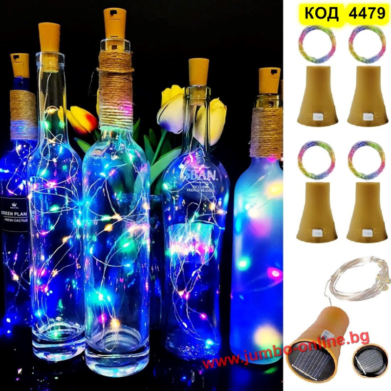 Светеща тапа за бутилка със соларен панел и акумулаторна батерия, многоцветна светлина    Виж пълното описание