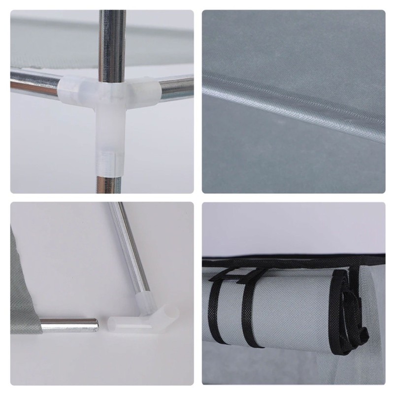 Шкафа за обувки осигурява чудесно решение за съхранение на вашата колекция от любими обувки. Отличаващ се с дизайн с 9 нива, този шкаф за обувки може перфектно да побере цяла колекция обувки за вас. Вече не трябва да се притеснявате къде да прибирате обувките във вашия дом. Благодарение на дизайна с 9 нива, този шкаф за обувки може лесно да побере до 30 чифта обувки, запазвайки всичките ви любими обувки подредени и добре организирани на едно място. Нетъканото покритие с ципове запазва обувките ви прикрити, като в същото време така ги предпазва от запрашване. Освен това шкафът за обувки е лек, което го прави лесен за преместване.