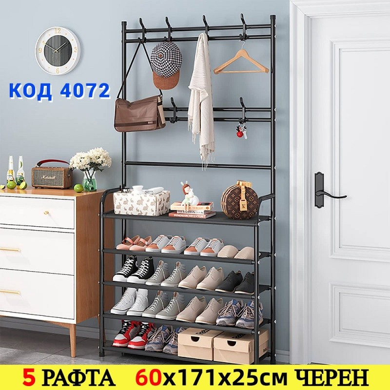 Мултифункционална етажерка, която може да се използва като стойка за обувки, закачалка за дрехи, шапки, обувки, чанти, чадъри и други.
