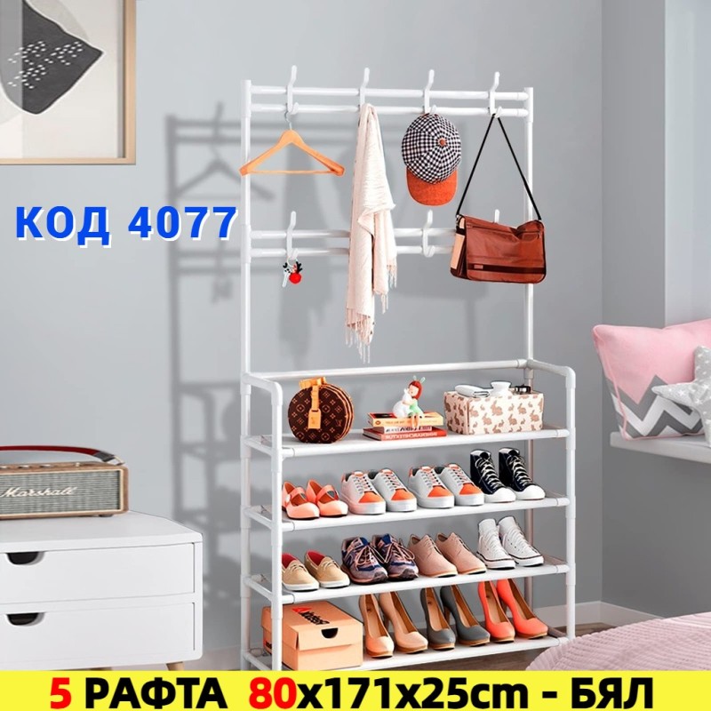 Мултифункционална етажерка, която може да се използва като стойка за обувки, закачалка за дрехи, шапки, обувки, чанти, чадъри и други.