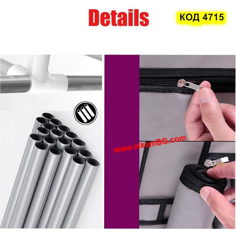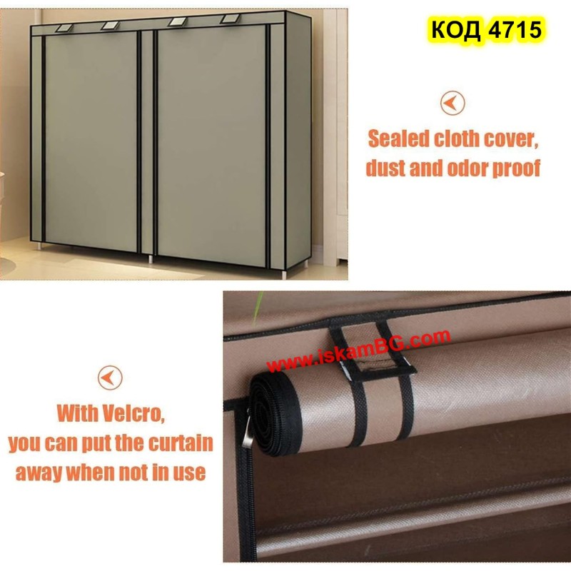 • Удобни врати: Затваряне с цип отгоре надолу за лесен достъп до целия шкаф без местене на крилата.