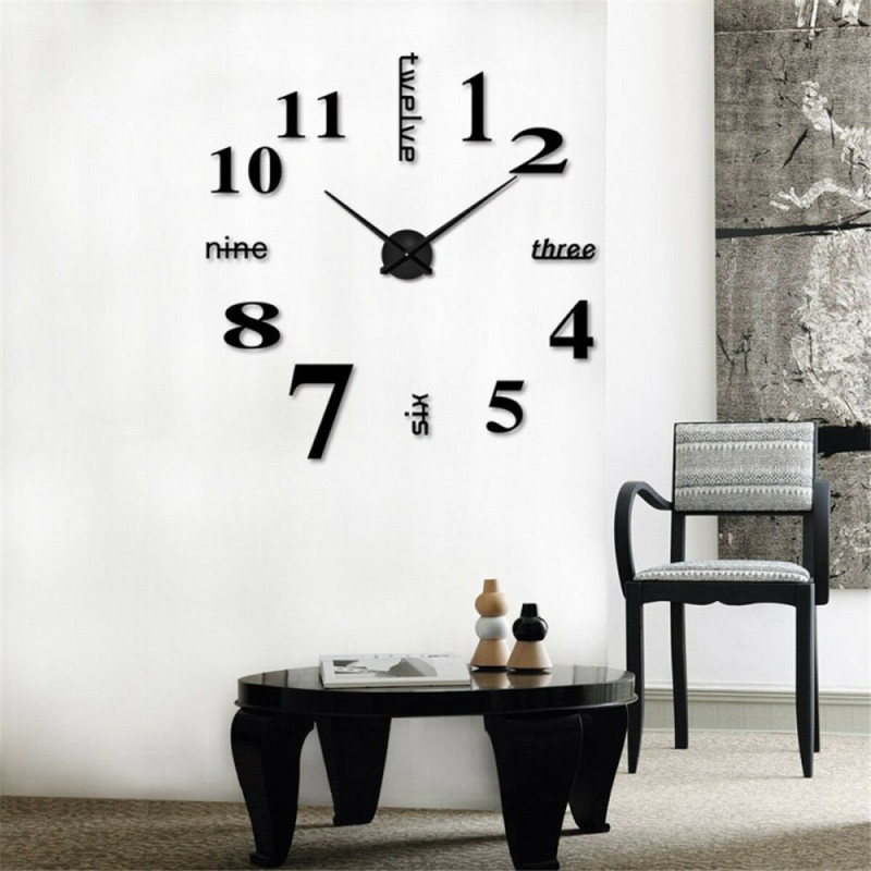 Стилен 3D стенен часовник с лепящи се цифри - модел 4215