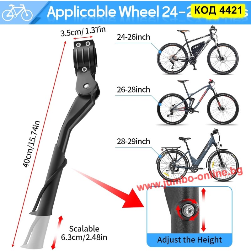 Издръжлива степенка за велосипед с регулируема височина. Подходящи за велосипеди с колела 24-29".