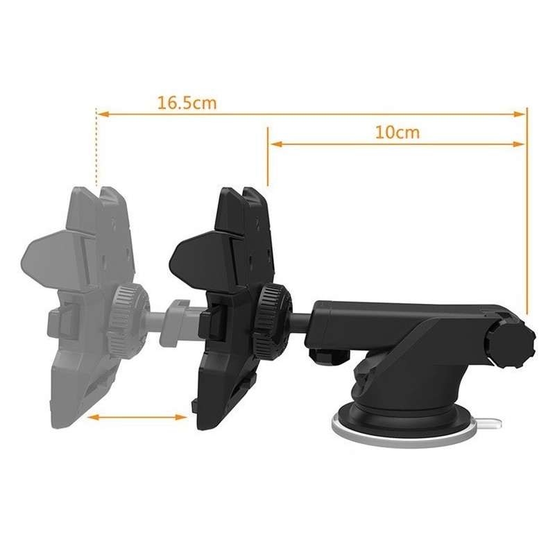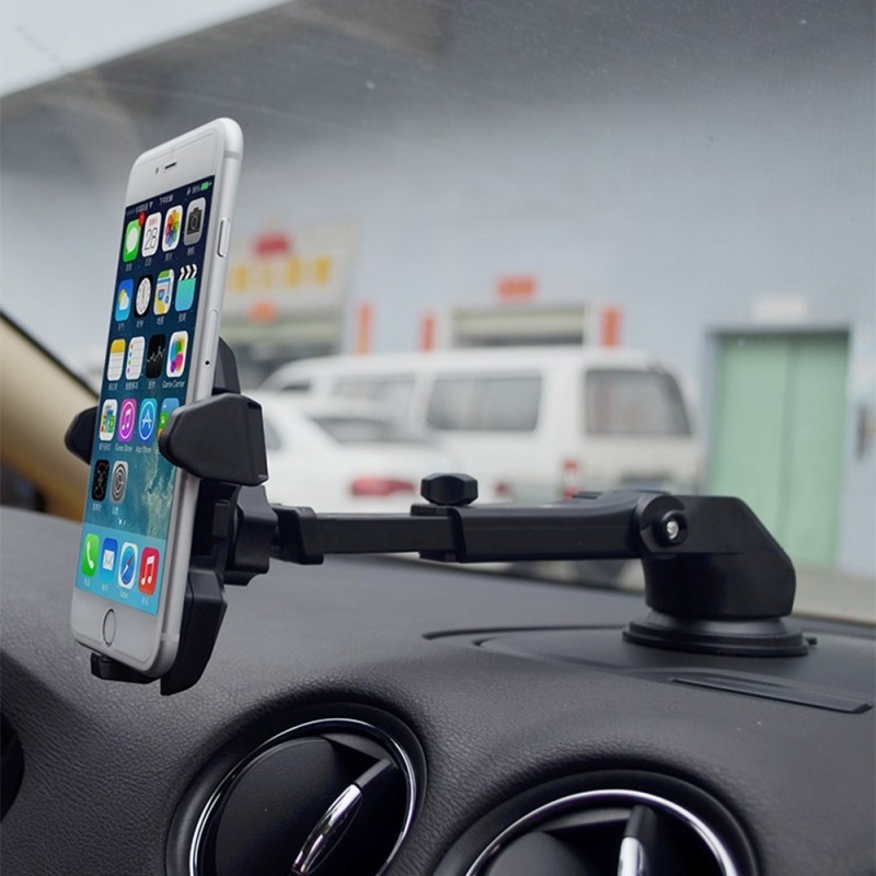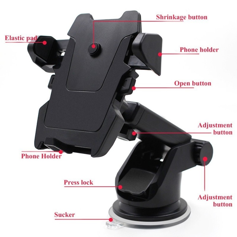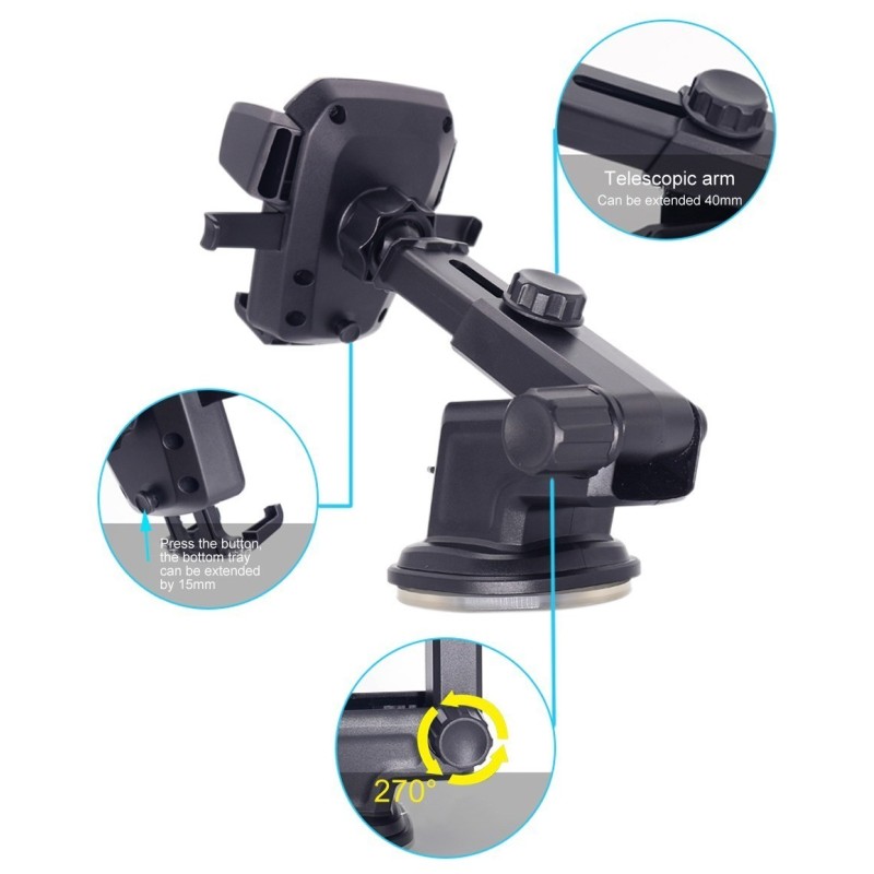 Тази телескопична поставка е съвместима с всички модели телефони с размери от 5.5см. до 8см. Тя осигурява удобно захващане на стойката на предното стъкло или таблото на автомобила с вакуум.