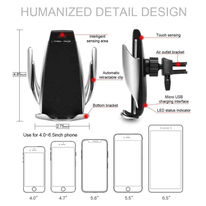 Automatic Wireless Стойка за кола, Безжично зарядно устройство, Fast Wireless зарядно, Qi standard