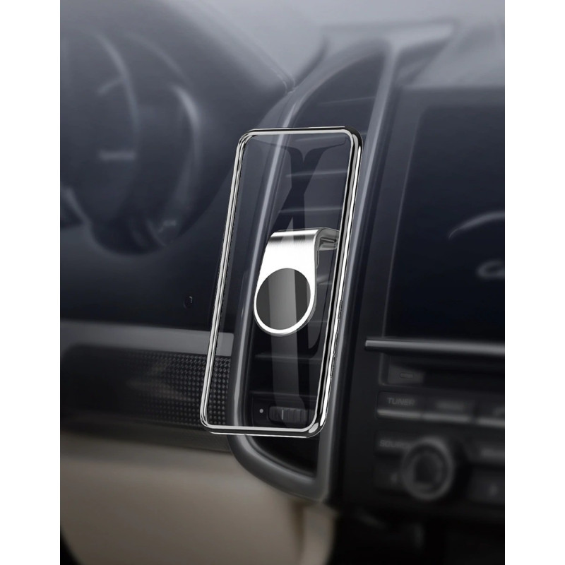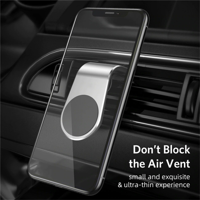 "Универсална магнитна поставка за мобилни телефони - перфектният аксесоар за вашето автомобилно пътуване. Тази качествена магнитна стойка с нов дизайн в L форма е специално проектирана да се монтира на въздуховода на вашия автомобил. Изработена от висококачествена алуминиева сплав и силния магнит ще държи здраво вашия телефон, без да се треперите за безопасността му.