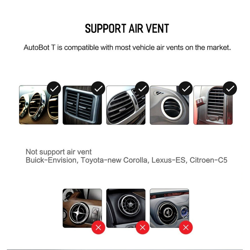 Захващането на магнитната стойка към автомобила се осъществява чрез специално разработените щипки, които са пригодени за решетките на въздуховодите. Това гарантира сигурно закрепване на устройството с висока издръжливост. Стойката е в комплекта с метална пластинка.
