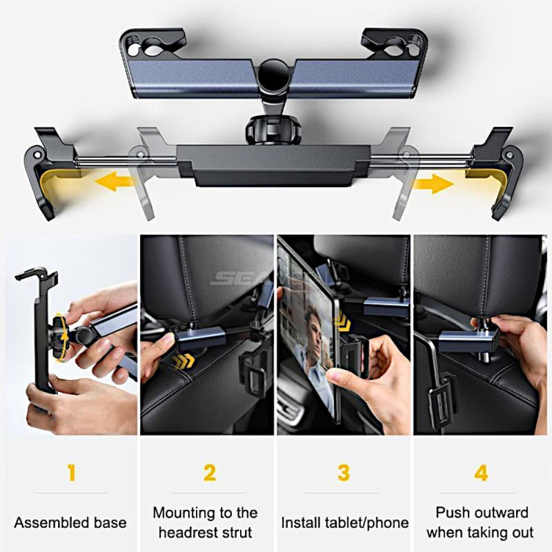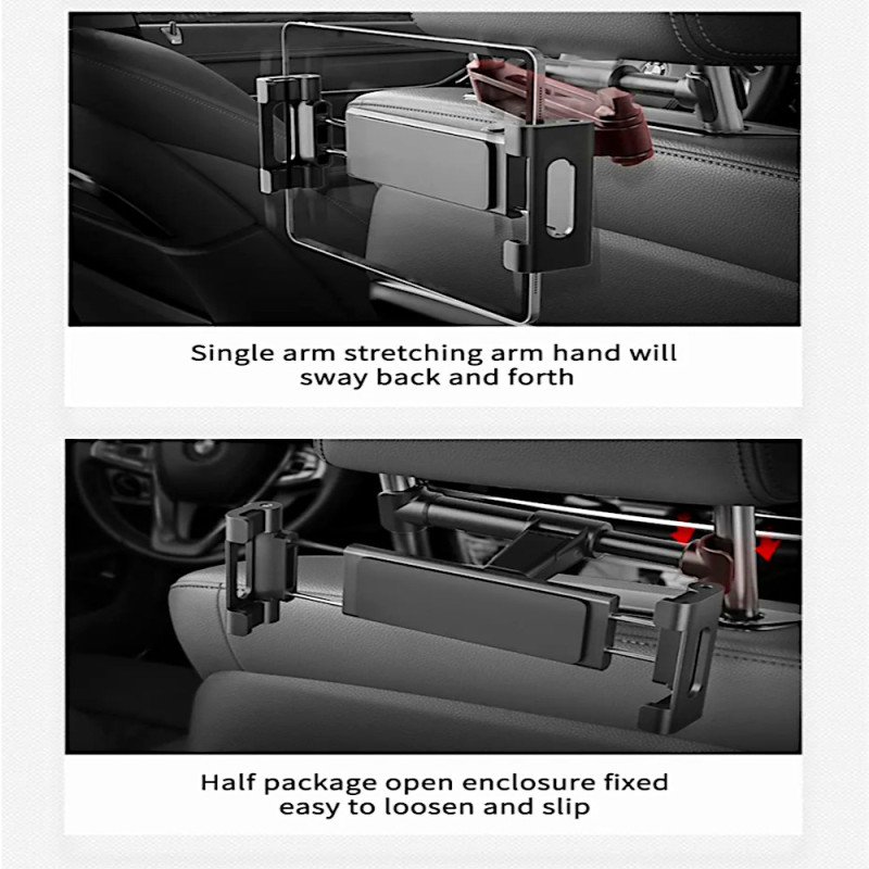 ✅ Монтажът е здрав и стабилен - дръжката се захваща здраво за облегалката за глава , осигуряваща удобно гледане - таблетът може да се отдалечава или приближава благодарение на дългото рамо, когато е напълно разгънато (опънато)