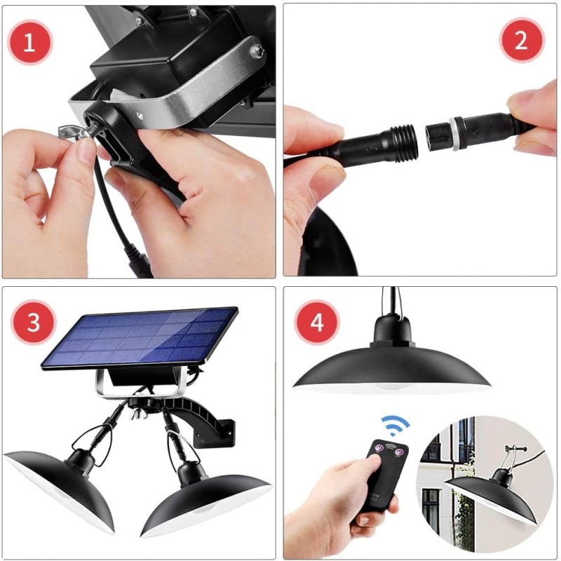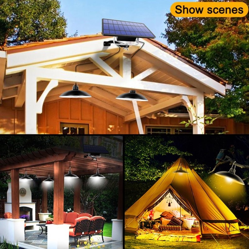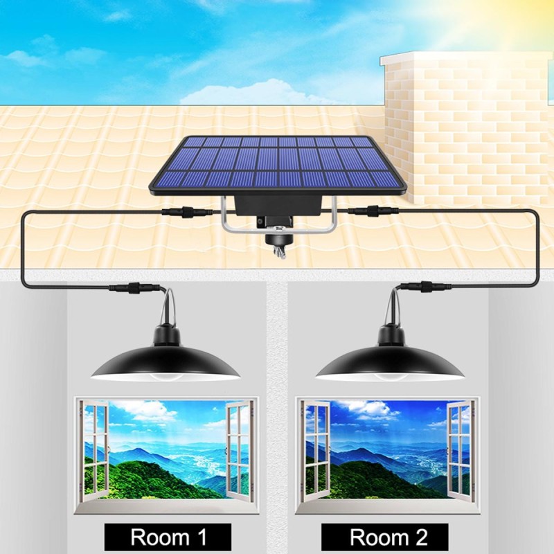Соларна лампа, комплект 2 броя висящи лампи със соларен панел, които могат да бъде поставени във стая на закрито в апартамента или на открито под беседката или барбекю.