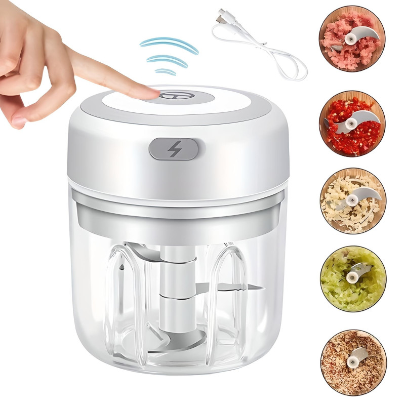 Електрическият мини чопър, безжичен, представлява удобен начин за приготвяне на храна. С него можете да забравите за ръчното нарязване, просто натиснете бутона отгоре, за да разтрошите съставките автоматично.