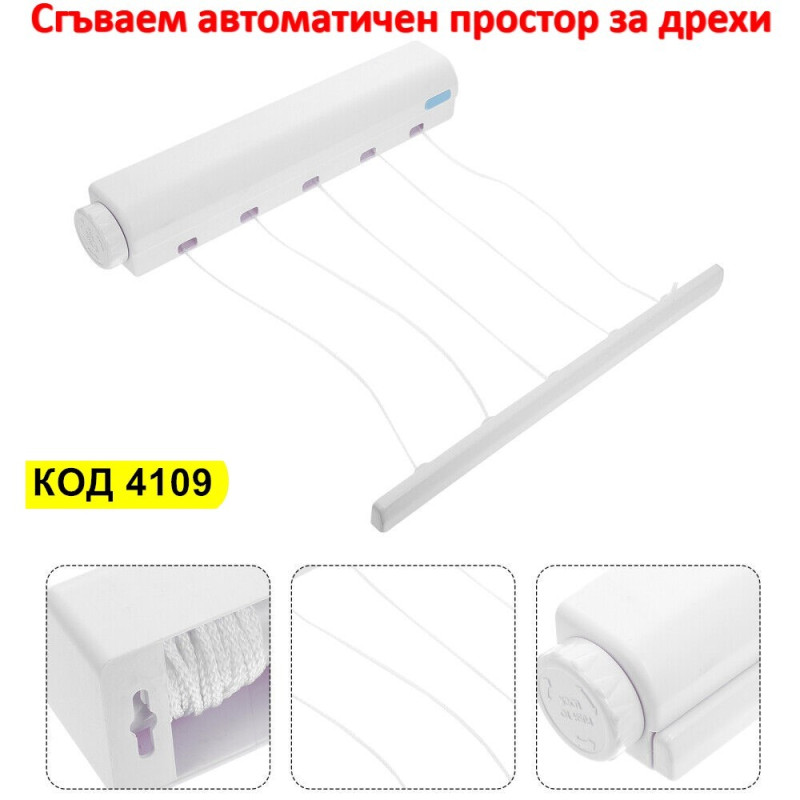 Представяме ви много практичен и удобен простор за дрехи. Той ще ви осигури допълнително място, на което да простирате вашите дрехи. Изключително практичен и не заема почти никакво място, когато не го използвате, защото е сгъваем. Може да поставите простора в банята, на терасата или където пожелаете. Когато изтеглите основната лайсна, на която са закрепени въжетата, те се разпъват толкова, колкото е разстоянието до отсрещната стена. Лайсната се поставя на стената посредством куки, към които се прикрепя. След като блокирате механизма, сушилникът е готов за употреба. А когато прането ви е изсъхнало и го съберете, лесно може да откачите лайсната и да я върнете обратно, за да я приберете. Така простора няма да Ви пречи, в което и да е от помещенията, в което сте го поставили.