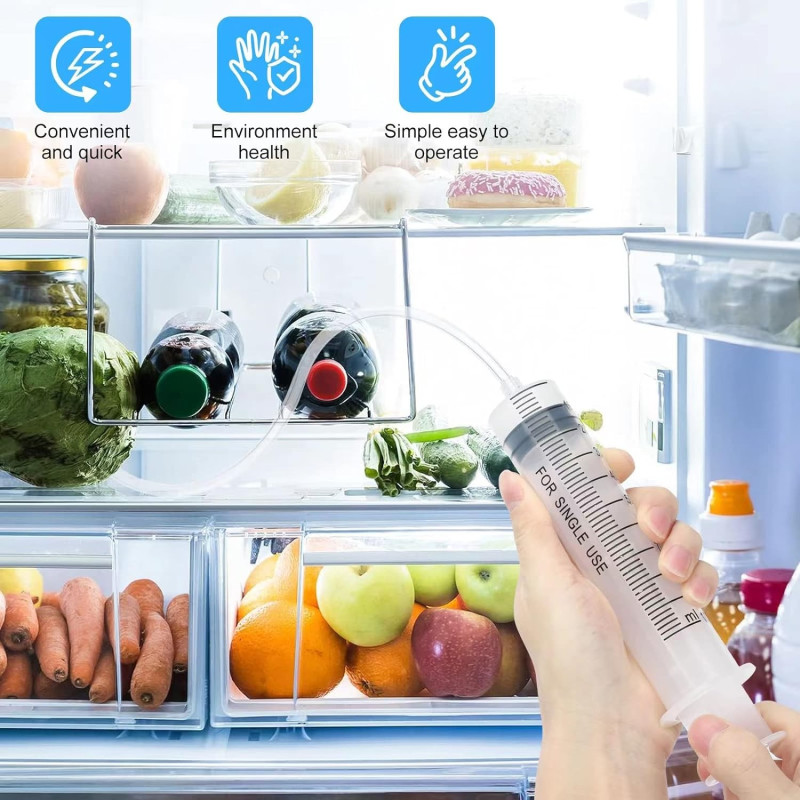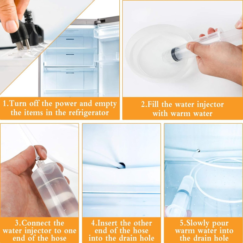 Премахнете мръсотията и поддържайте Вашия хладилник в безупречно състояние с нашия комплект за почистване на дренажи от 5 части. Вземете своя комплект днес и се насладете на по-чист и по-ефективен хладилник!