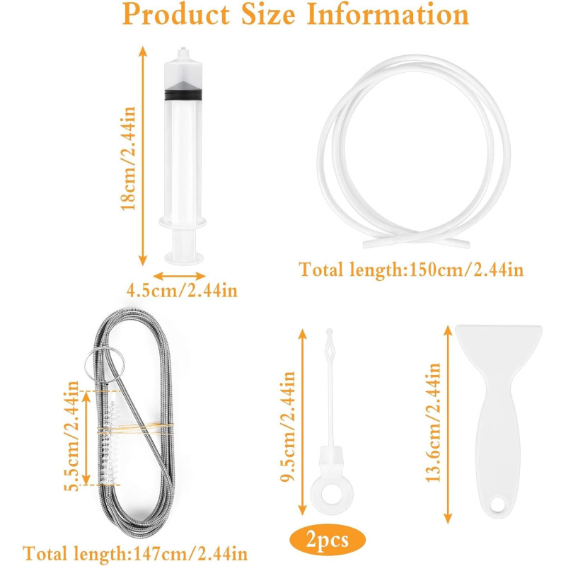С комплекта за почистване на канализацията на хладилника от 5 части можете лесно да предотвратите нежелани разливи, течове и неприятни миризми, причинени от запушената дренажна система. Комплектът е лесен за използване и не изисква специални умения или знания.