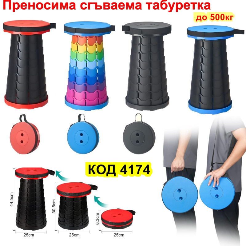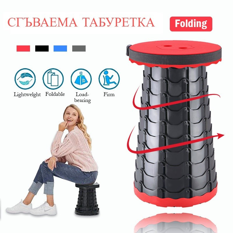 Пластмасова табуретка, сгъваема, преносима и регулираща се по височина