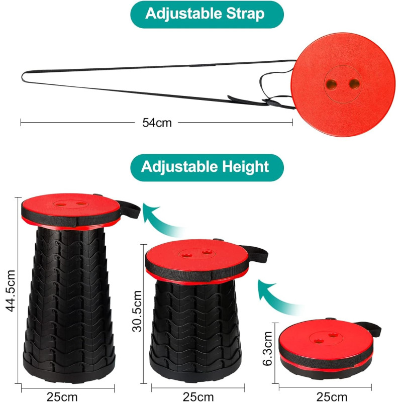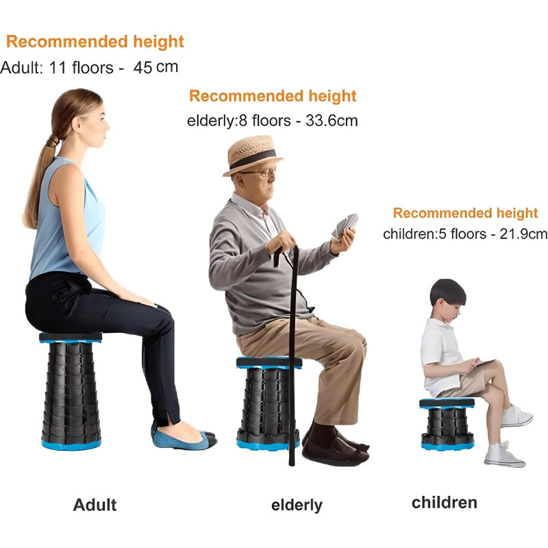 ❤️Напълно разгънатата табуретка е с височина 45см! Структурата на табуретката ви позволява да я поставите в 9 позиции !Само я заключете на избраното място при разгъване! Сгънатата табуретка ще работи чудесно и като столче за риболов, излет, къмпинг или просто като преносимо столче за възрастни хора! За разгъване на табуретката : Хванете дръжките на седалката и в същото време дъното на табуретката. Внимателно завъртете дръжките наляво и изпънете табуретката на подходящата височина. Уверете се, че заключващите зъби са заседнали в ключалките в правилната позиция. Насладете се на удобна седалка!