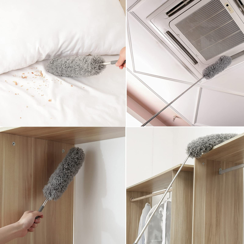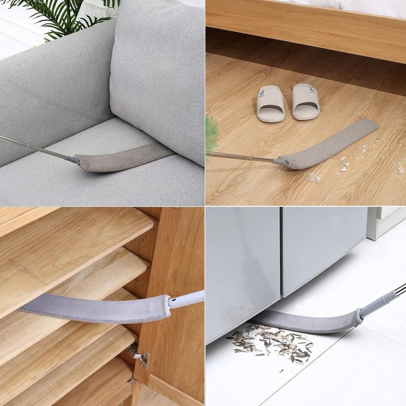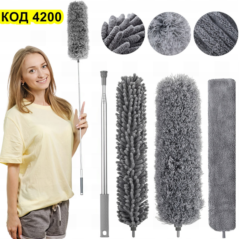 С този прахоуловител можете да достигнете всяко място, което изисква почистване, без много усилия! В сгънат вариант антистатична четка с дръжката е 84 см, а в разгънато до пълна дължина достига 250 см. По-интересното е, че не е нужно да разнасяте четката до максималния диапазон, а до дължината, която ви е необходима в момента. Метлата има два сменяеми върха. Надлъжният с подвижен почистващ препарат е предназначен за цепнатини и плоски повърхности. Благодарение на възможността за свободно огъване можете да бръкнете дори под хладилника. Има и кръгла четка, която ще отстрани старателно прах и паяжини зад гардероби, от тавана, от мебели и много други кътчета. А възможността да го огънете по всякакъв начин ще ви накара да достигнете и до най-недостъпните места.