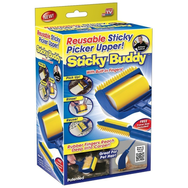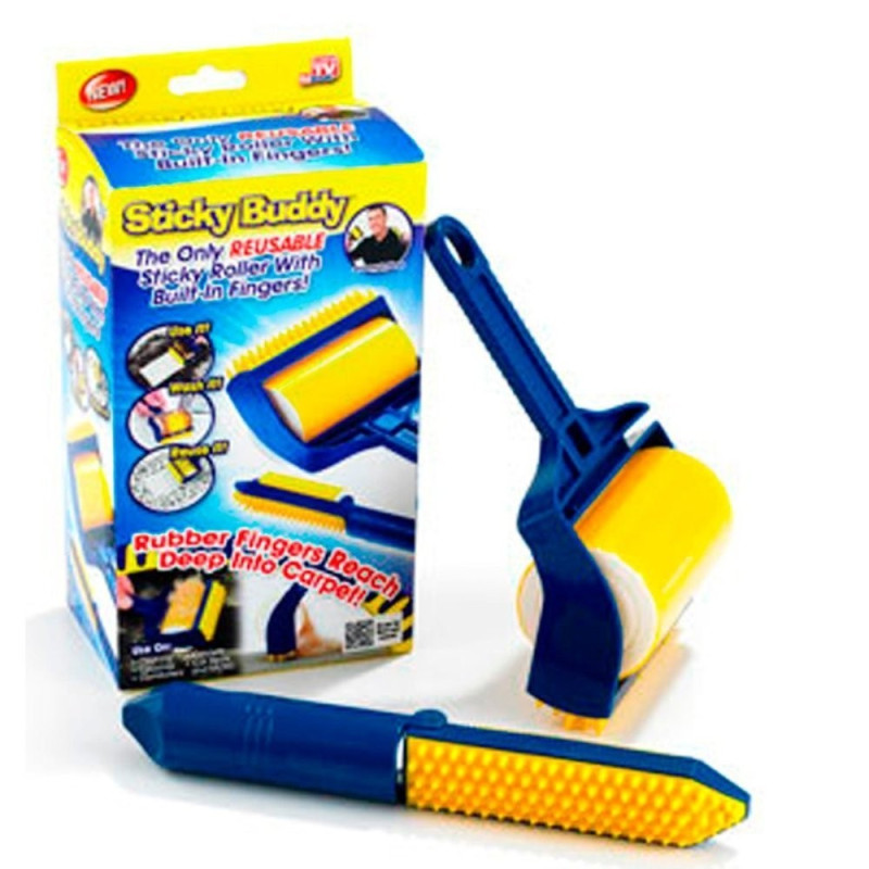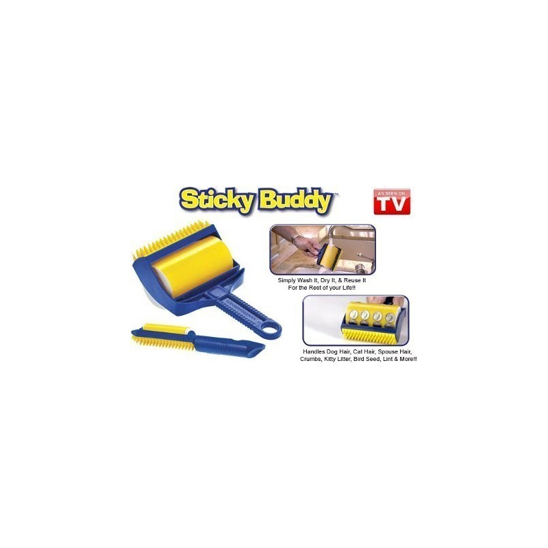 Специалната функция на Sticky Buddy е, че може да се мие и използва многократно. Просто почистете го под течаща вода или с мек сапун, но не използвайте алкохол. Затваряйте ролката с предпазното капаче, когато не я използвате. Гумените бодлички са проектирани да изкарват мръсотията на повърхността, откъдето миещата ролка лесно я обира.