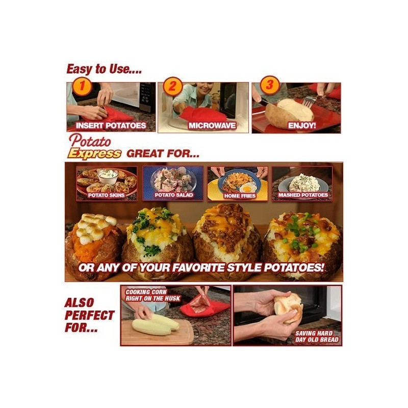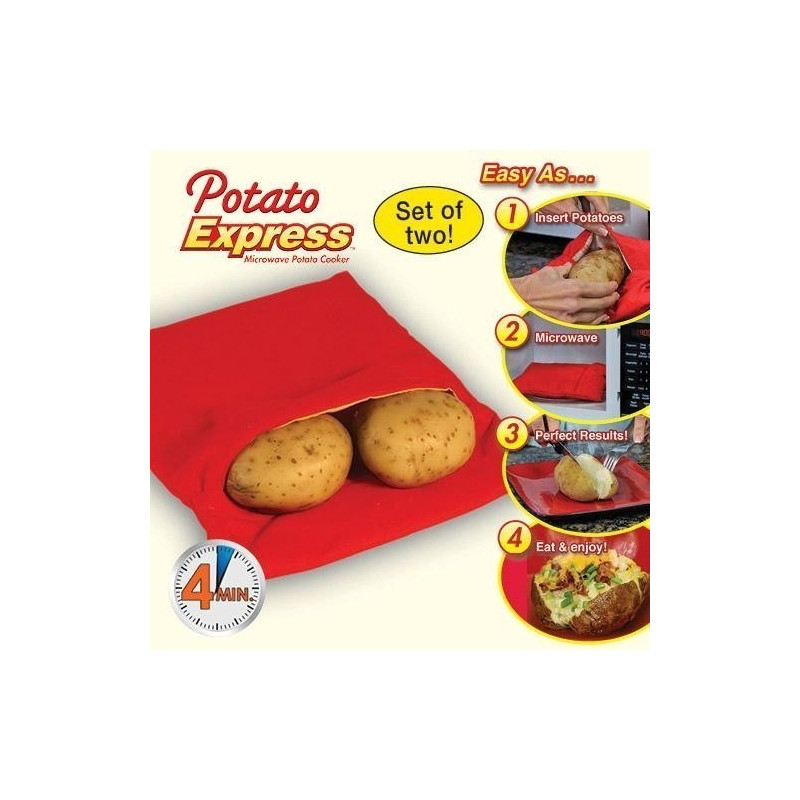 Поръчайте Potato Express и се насладете на вкусните, пухкави картофи в микровълнова фурна. Внесете повече удоволствие в готвенето и се насладете на перфектния вкус на печените картофи, без излишни усилия и време.