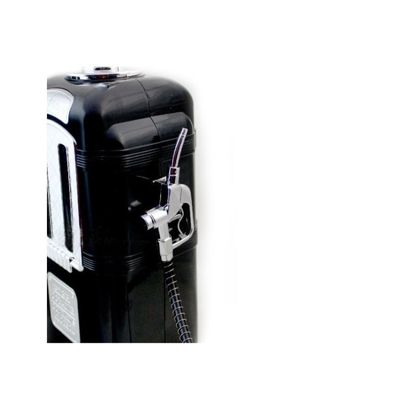 Тази ретро колонка е лесна за пълнене и почистване и разполага с капацитет от 1 литър, разделен на две отделни резервоара. Това ви позволява да сипвате едновременно алкохол и безалкохолна напитка. За ваше удобство, колонката разполага с два самостоятелни отделни маркуча и два пистолета за пълнене. Размерите й са 44 х 22 х 17,5 см, а цветовете са черно и червено, което усилва вашия стил и добавя нестандартен дизайн.