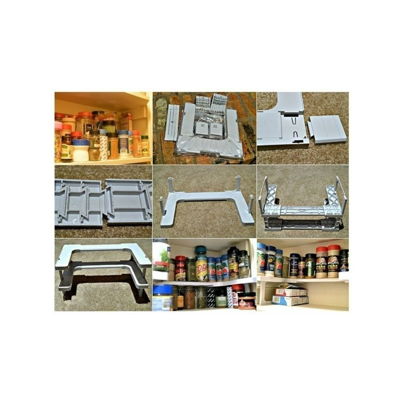 Оптимизирайте пространството във вашата кухня и създайте комфорт и ред с кухненския органайзер Spicy Shelf. Този функционален органайзер се разглобява и сглобява по различни начини, в зависимост от вашите нужди и предпочитания. Можете да го използвате за организиране на шкафове, поставяне на външен плот или подреждане на козметиката в банята.