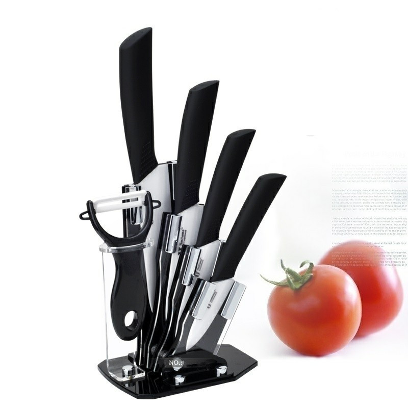 Комплект 4 керамични ножа, белачка за зеленчуци и поставка