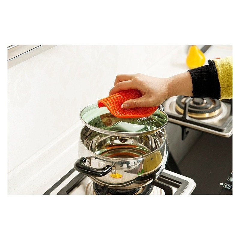 Домакинската силиконова подложка за горещи съдове, която Ви представяме, е истински мултифункционален помощник във вашата кухня. Изработена от мек и гъвкав силикон, тази подложка не само че предпазва повърхностите, на които поставяте горещите съдове, но може също така да бъде използвана и като ръкохватка за захващане на съдовете или дори като отварачка за буркани.