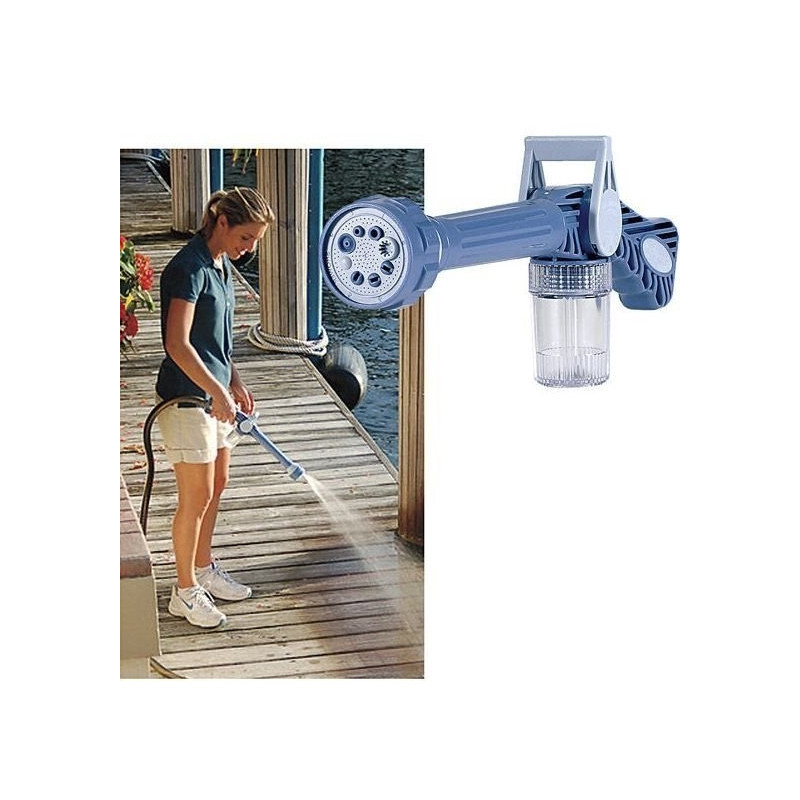 С накрайника Ez Jet Water Cannon ще можете да извършвате множество задачи по поддръжка на вашата градина и автомобил. Използвайте го за почистване на високи и труднодостъпни прозорци, измиване на автомобили и измиване на градини и алеи. Но това не е всичко - накрайникът е снабден с контейнерче, в което може да добавите препарат или сапун. Така можете лесно да измивате и почиствате дори и най-упоритите замърсявания.
