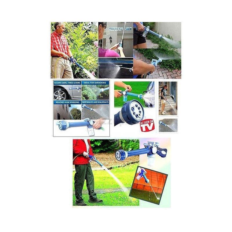Накрайникът Ez Jet Water Cannon е снабден с 8 различни модела на пръскане, които могат да се променят според вашите нужди и предпочитания. Със своята висококачествена конструкция и универсална връзка към маркуч, този накрайник е идеален за всякакъв вид маркучи. Но най-важното - той работи само със силата на струята, която кара водата да излиза под налягане от накрайника.