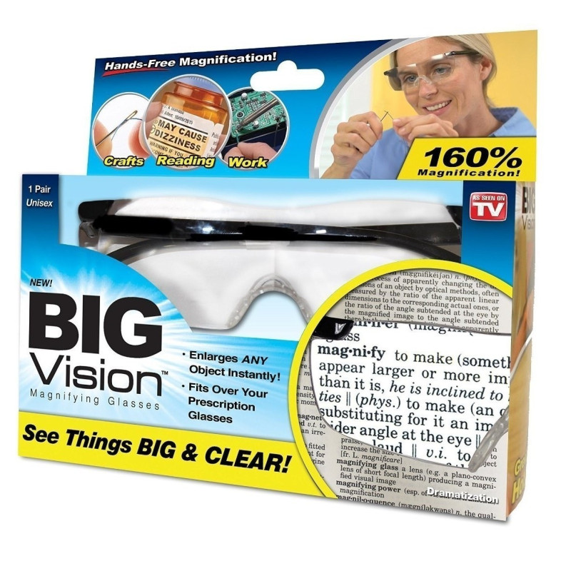 Очила Big Vision са иновативно решение, което ще ви помогне да видите света по-ясно и да се насладите на по-голям комфорт в ежедневието си. Тези увеличителни очила са създадени с една цел - да превърнат всяка задача в лесна и приятна дейност.