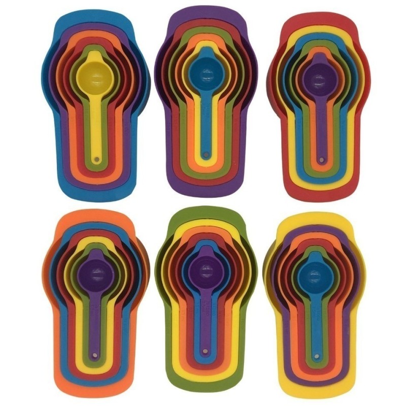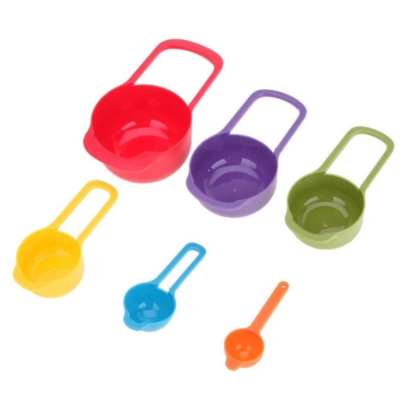 Комплектът включва 6 лъжички с различна вместимост и цветове, които се побират една в друга за удобно съхранение. Това ви позволява да различавате лесно коя лъжица ви е необходима и след употреба да ги съхранявате компактно.