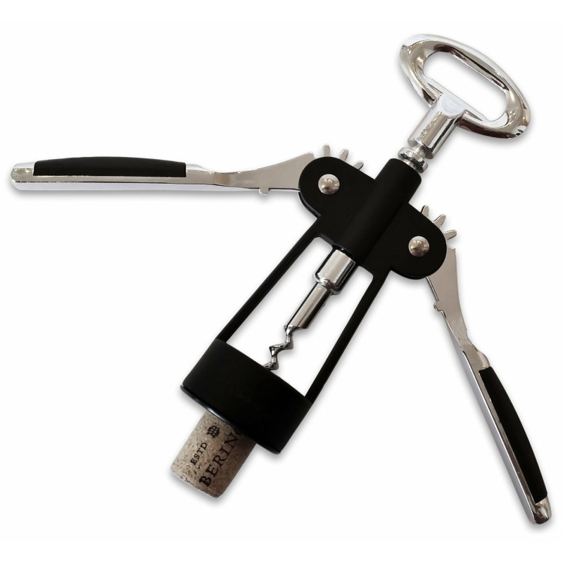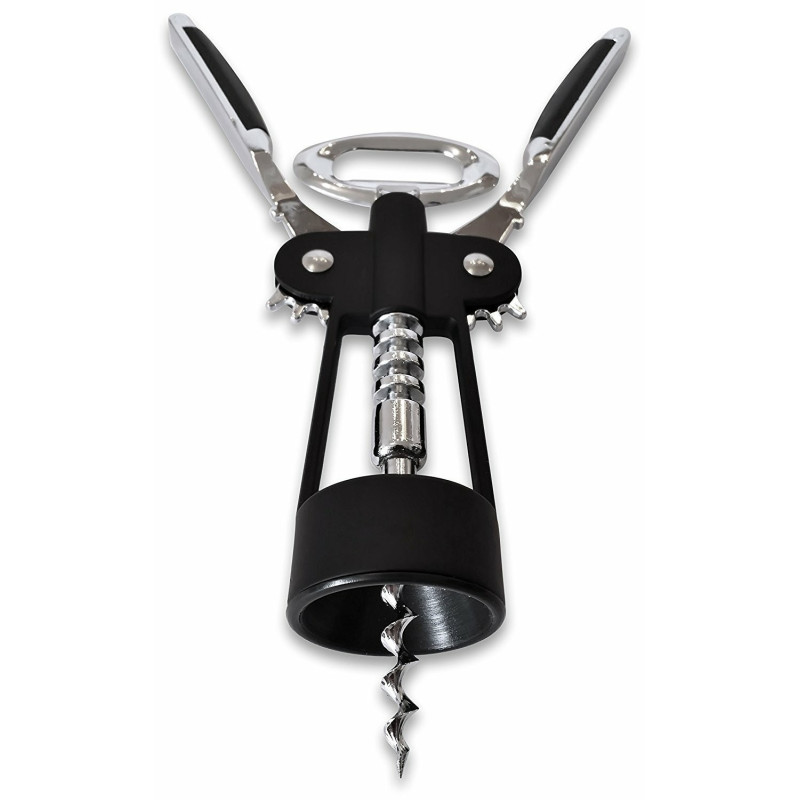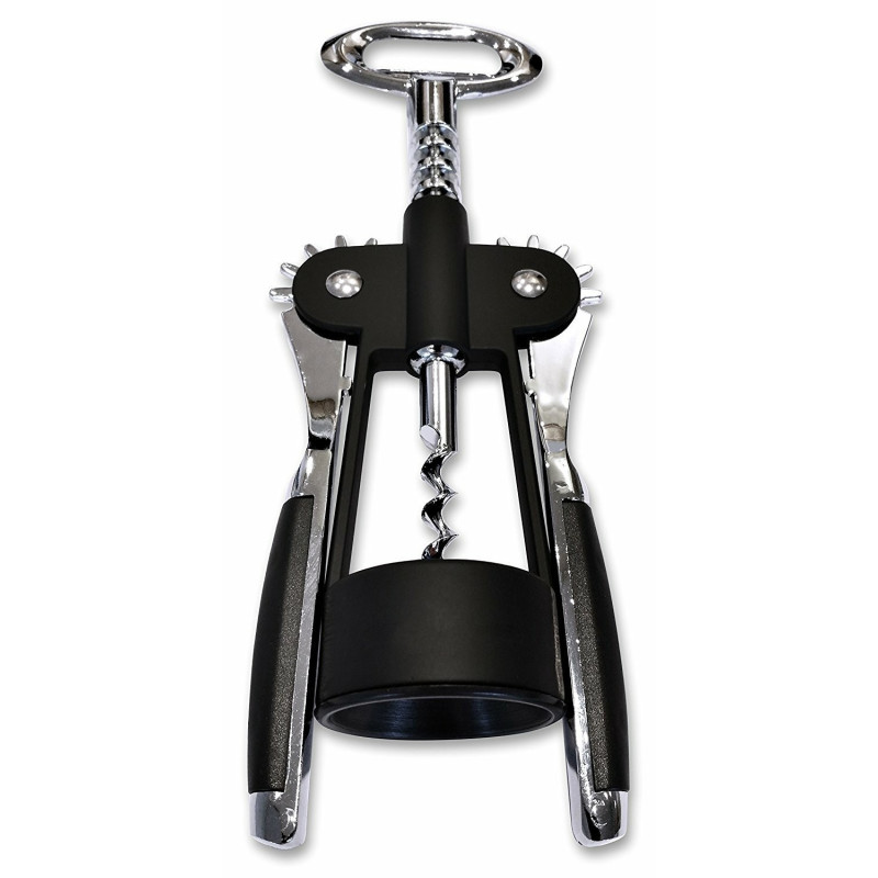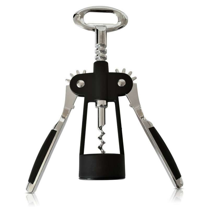 Този тирбушон е снабден с винт и иновативни повдигащи се странични гумирани рамена, които гарантират бързо и лесно отваряне на всяка бутилка с вино. Неговият метален лостов механизъм осигурява безпроблемно изваждане на корковите тапи. А не само това - горната част на тирбушона може да се използва и като отварачка за шишета с метални капачки.