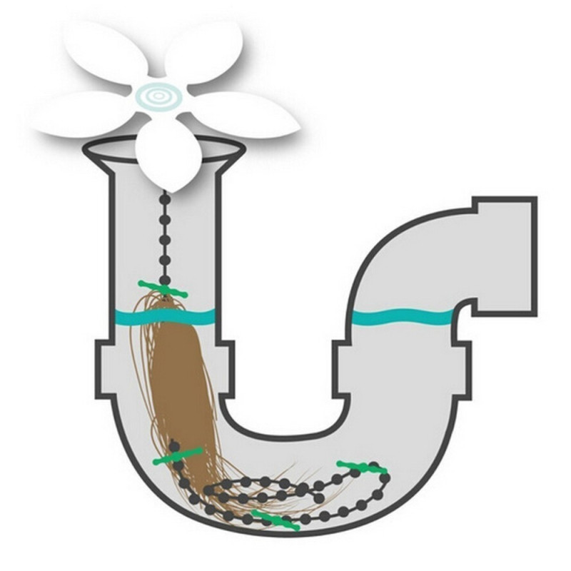 Тя е снабдена със специални здрави, пластмасови пръчици на 4 места, които са предназначени да здраво захващат отпадъците и космите, насъбрани в канала. Просто поставете верижката в сифона и оставете я да действа за няколко седмици. След това, просто издърпайте верижката и ще видите как всички замърсявания и косми са били лесно премахнати от тръбите.