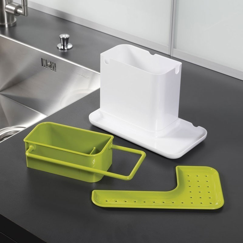С мултифункционалния органайзер за мивка, може да съхранявате гъби, препарати за посуда и телчета за чинии, без да отнемате ценно пространство на плота. Той е снабден с дренажна система, която позволява бързо отцеждане на водата, така че всичко да се подсуши бързо и ефективно.