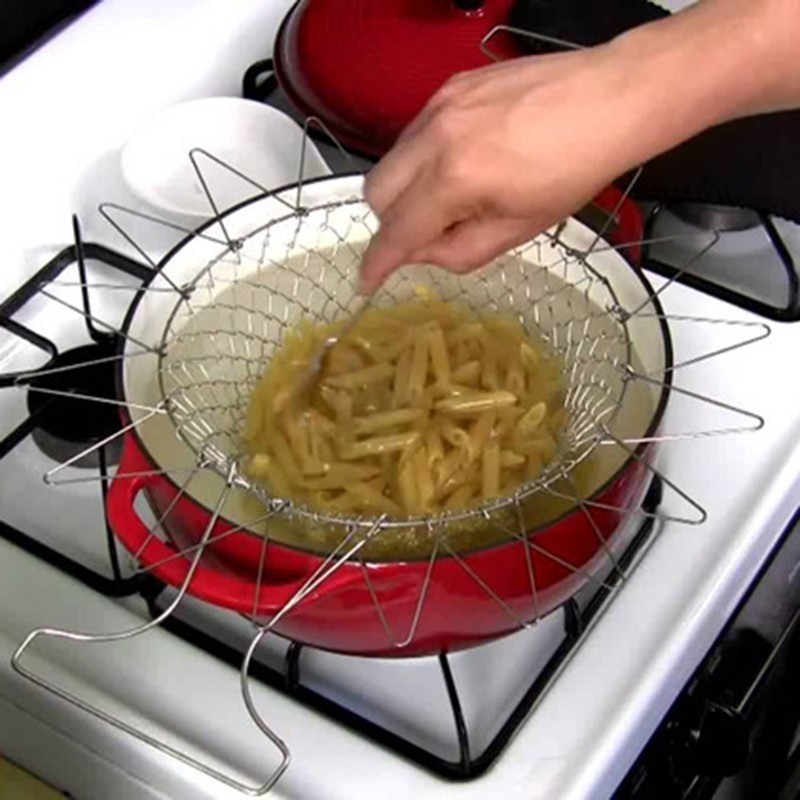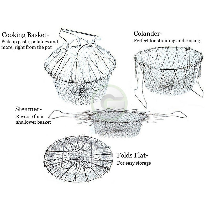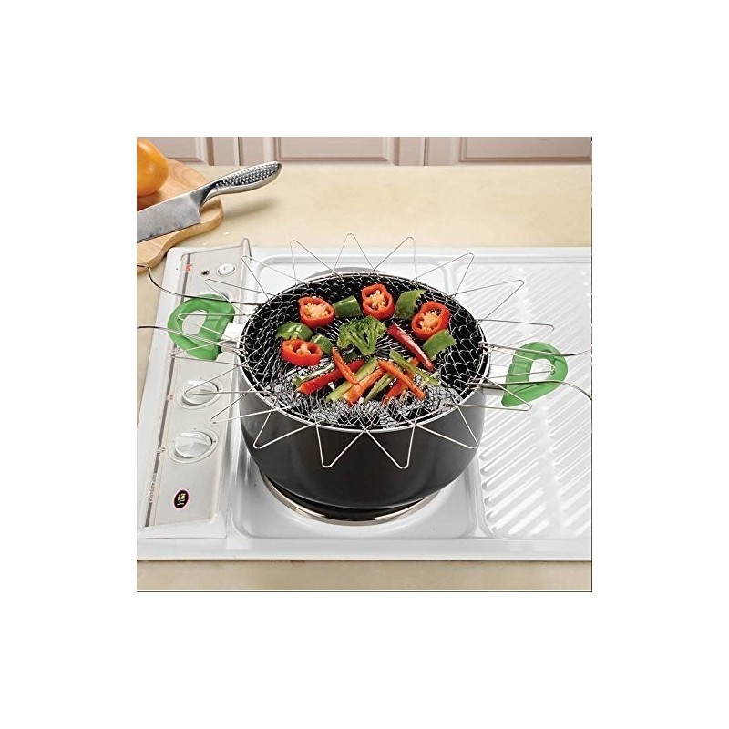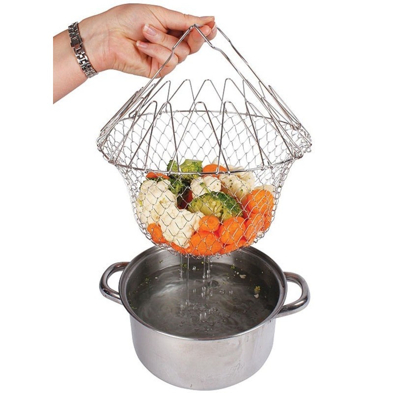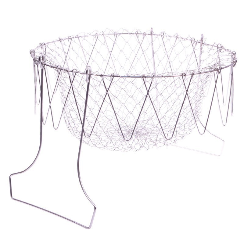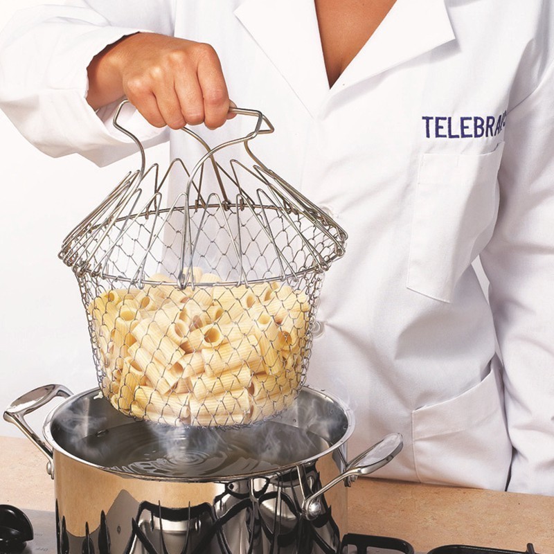 Chef Basket е метална кошница с удобни дръжки, които предпазват ръцете ви от изгаряне. Той се свива и разгъва, което го прави подходящ за отцеждане на продукти от мазнина или вода. Тази иновативна кошница не само улеснява процеса на готвене, но и спестява време и усилия.
