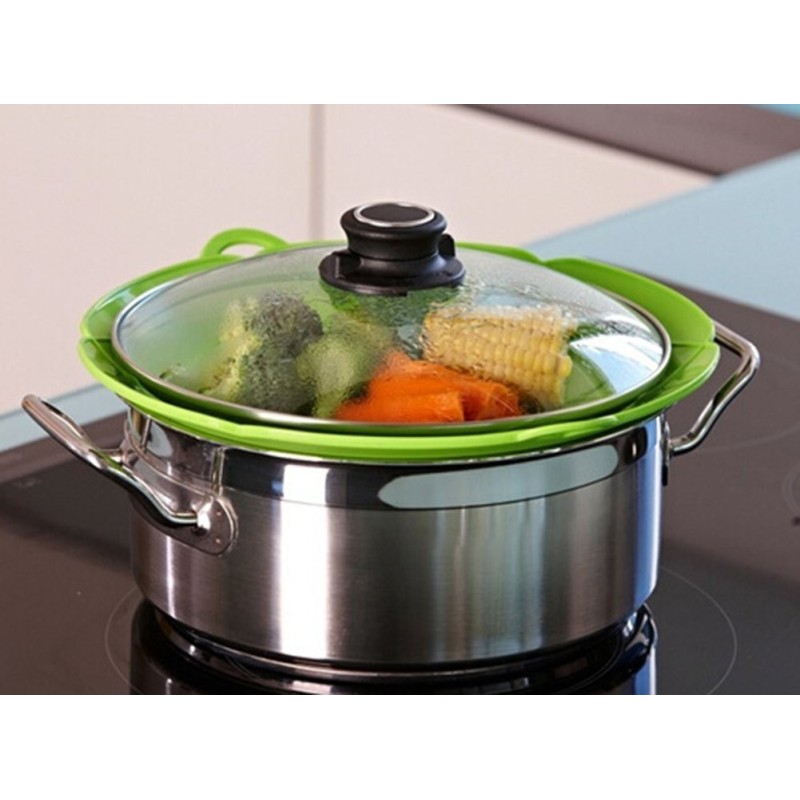 Със своята универсалност, този капак може да бъде използван за готвене на задушени зеленчуци. Просто поставете ги в тенджерата, сложете капака отгоре и нека парата премине през процепите на капака, задушавайки зеленчуците перфектно.
