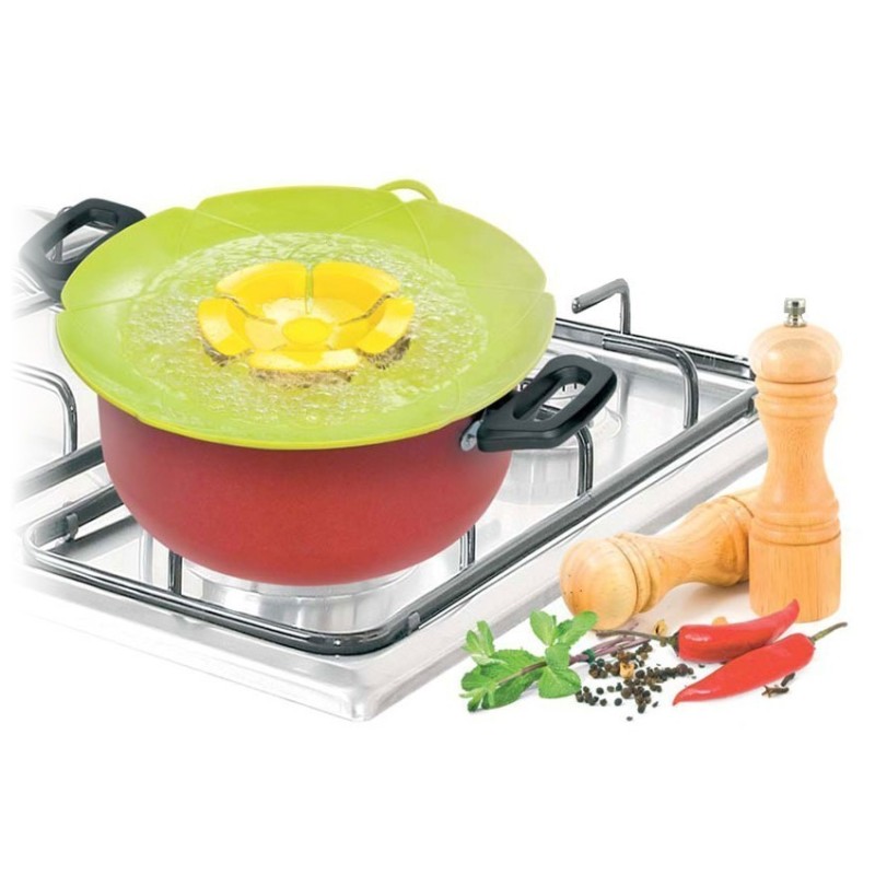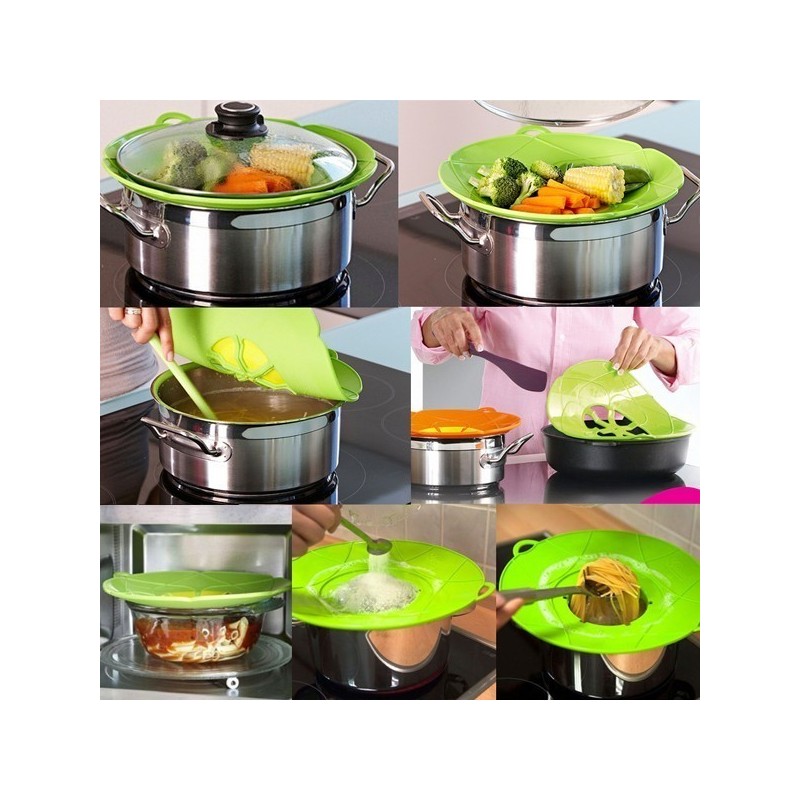 Използвайки гениалния Капак за Тенджери против кипване, ще преобразите готвенето в кухнята си в истинско удоволствие. Този силиконов капак е снабден със специални отвори, които позволяват на парата и пяната да се отделят по време на готвене, предотвратявайки така кипване и пръскане на ястията. От сега нататък, Вашата печка ще бъде по-чиста, а Вие ще имате повече време и удоволствие да се насладите на готвенето.