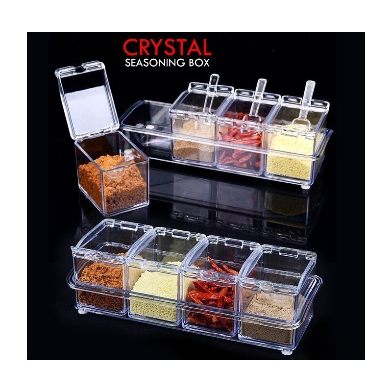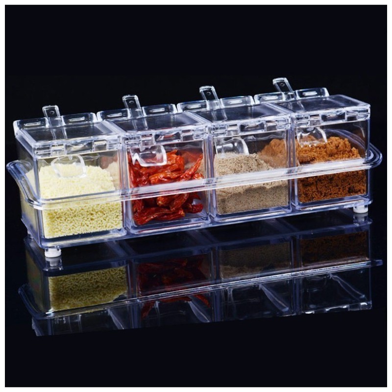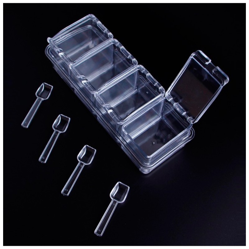 Имаме удоволствието да ви представим комплект 4 бр. прозрачни кутии за съхранение на подправки. Този комплект е идеален за всеки, който обича да готви и иска да има под ръка своите любими подправки.
