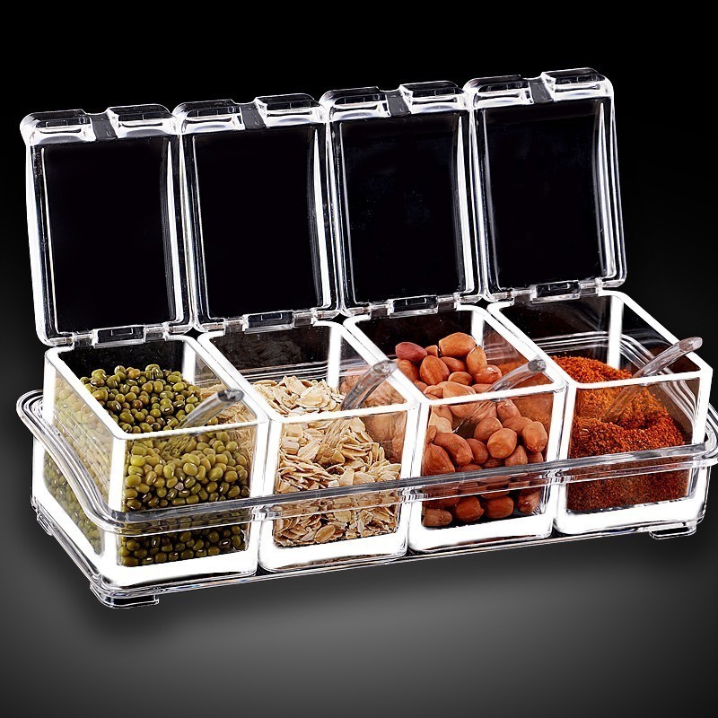 Комплект 4 бр. прозрачни кутии за съхранение на подправки