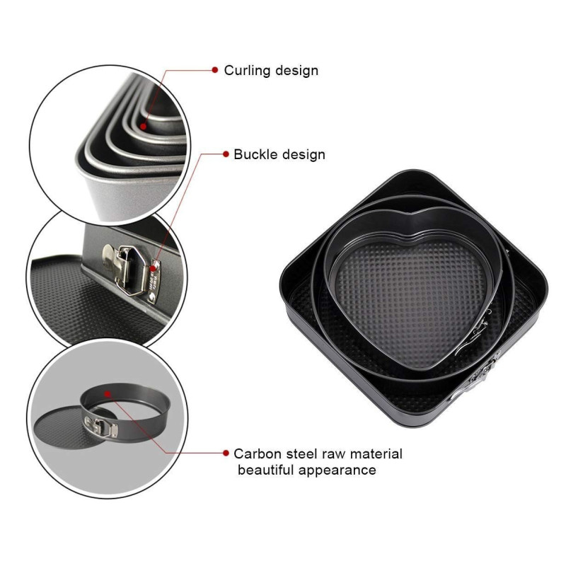 Комплектът се състои от 3 различни по размер тефлонови форми за печене и е изключително практичен, тъй като според броя на гостите можете да приготвите по-малко или по-голямо печиво. Изключително удобни за ползване.
