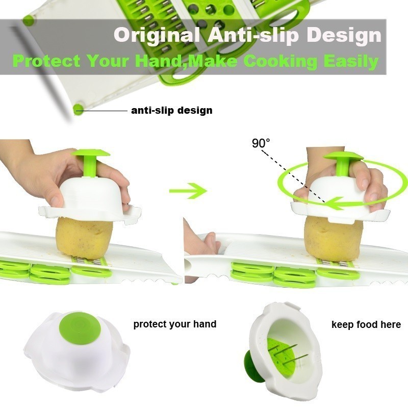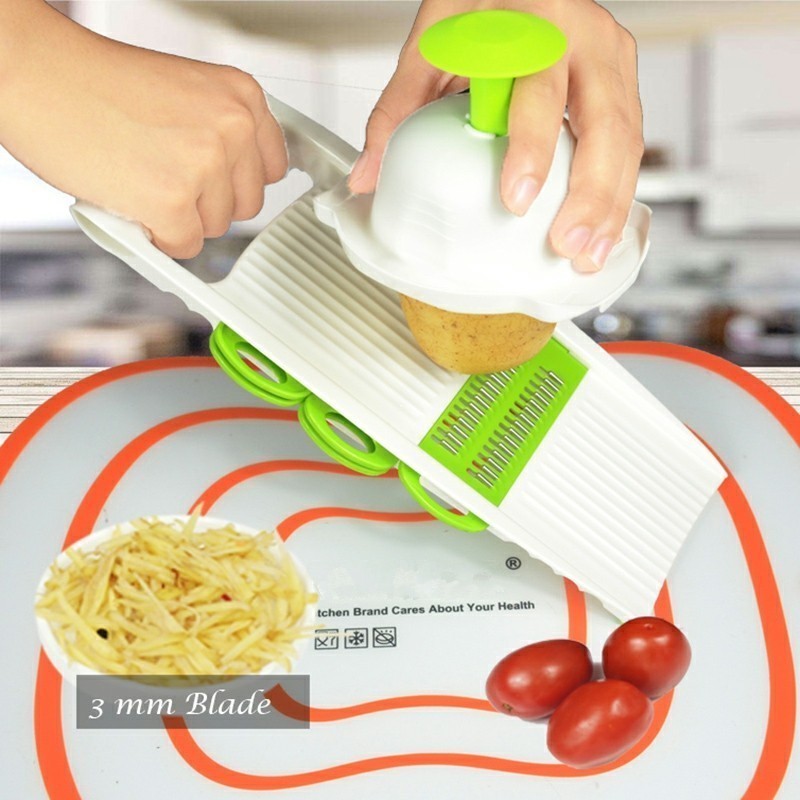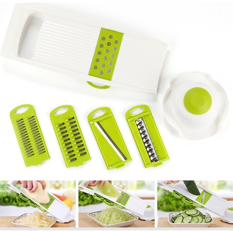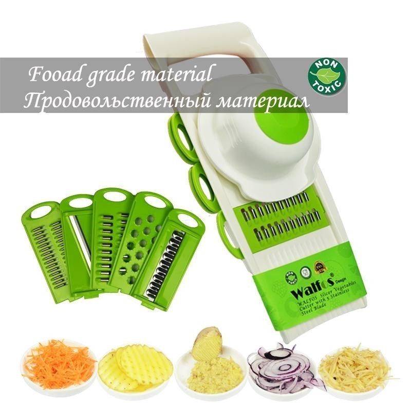 Кухненското ренде за зеленчуци с 5 приставки и държач е перфектното допълнение към всяка кухня. То е мултифункционално и ви позволява да режете и стъргате плодове, зеленчуци, месо, сирене, кашкавал и много други храни.