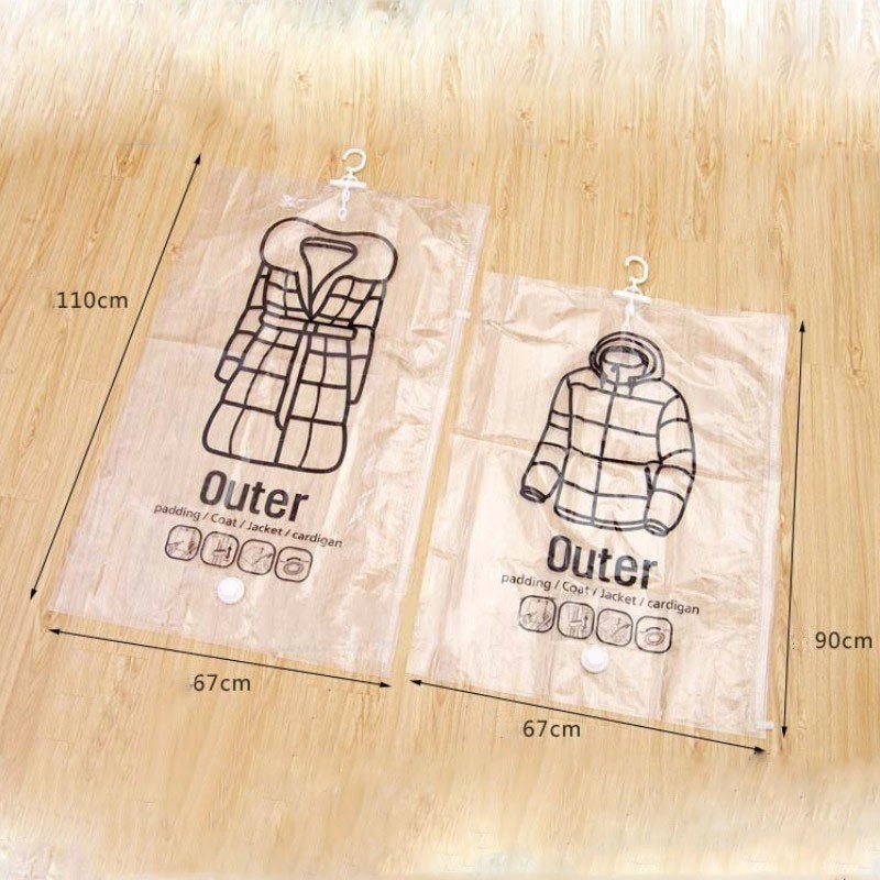 Вакуумиращи пликове със закачалка за гардероб - идеалното решение за обемните дрехи! Тези вакуумиращи пликове са специално проектирани, за да ви помогнат да спестите място във вашия гардероб, дрешник или куфар за пътуване.